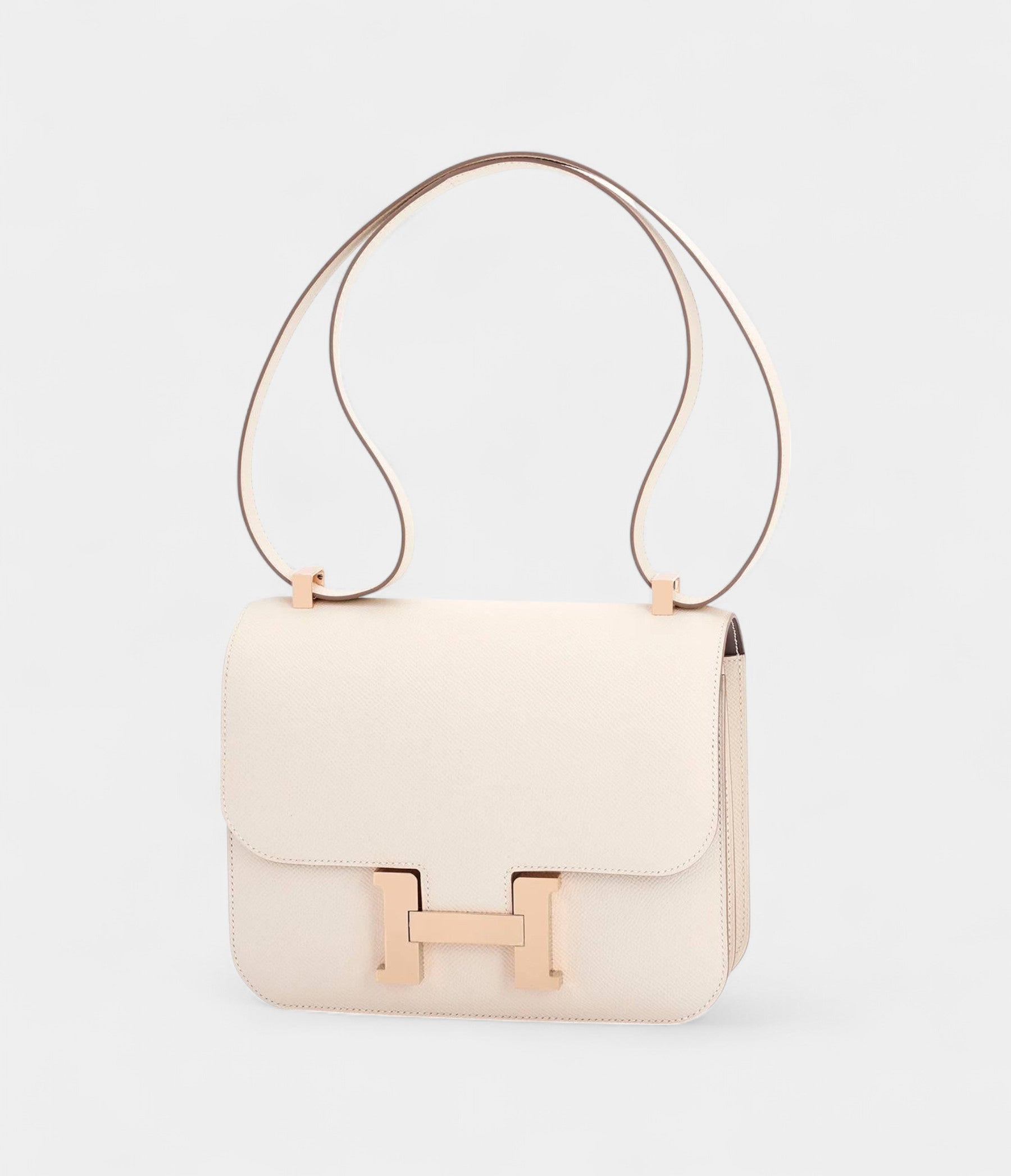 Hermes Constance 24 Craie Etain HSS Horseshoe Rose Gold Shoulder Bag
