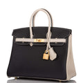 Hermes Birkin 25 Black and Craie Togo Brushed Gold Hardware
