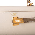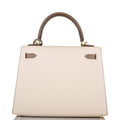 Hermes Kelly 25cm Bi-Color Craie and Etoupe Epsom Sellier Brushed Gold Hardware