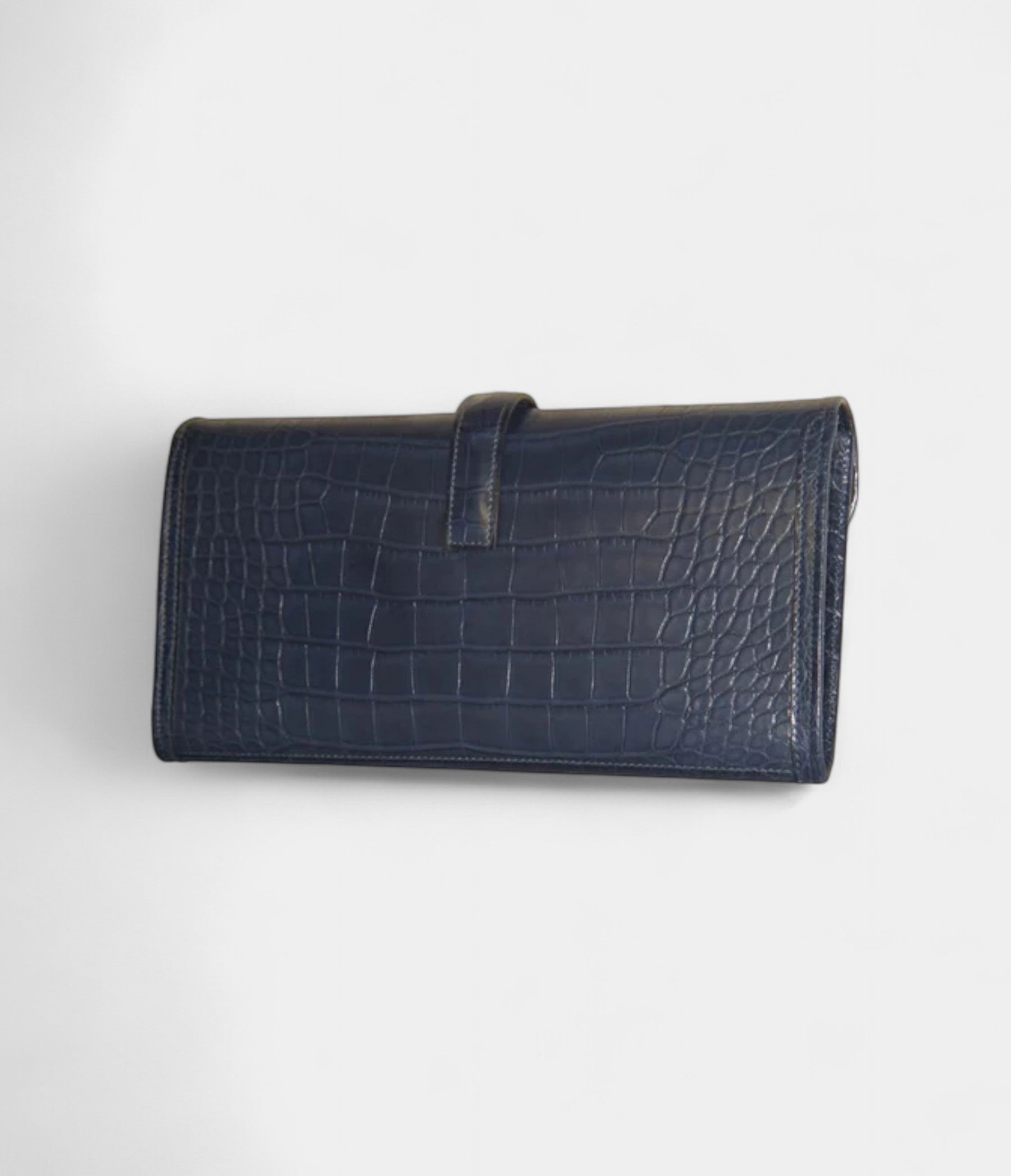 Hermès Jige 29 Clutch Bag Blue Alligator