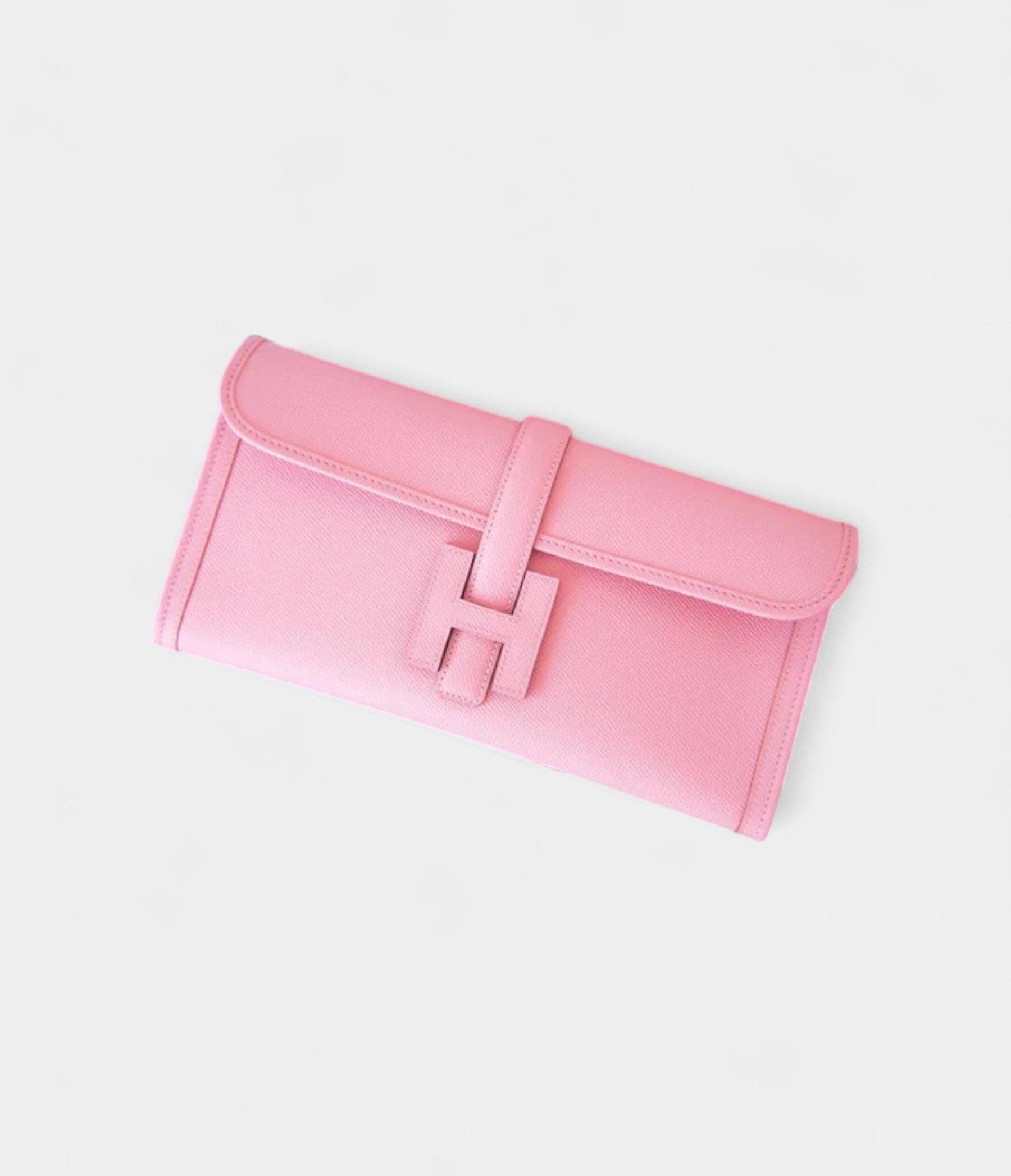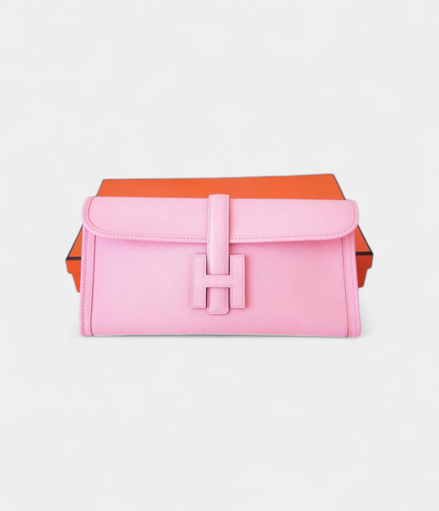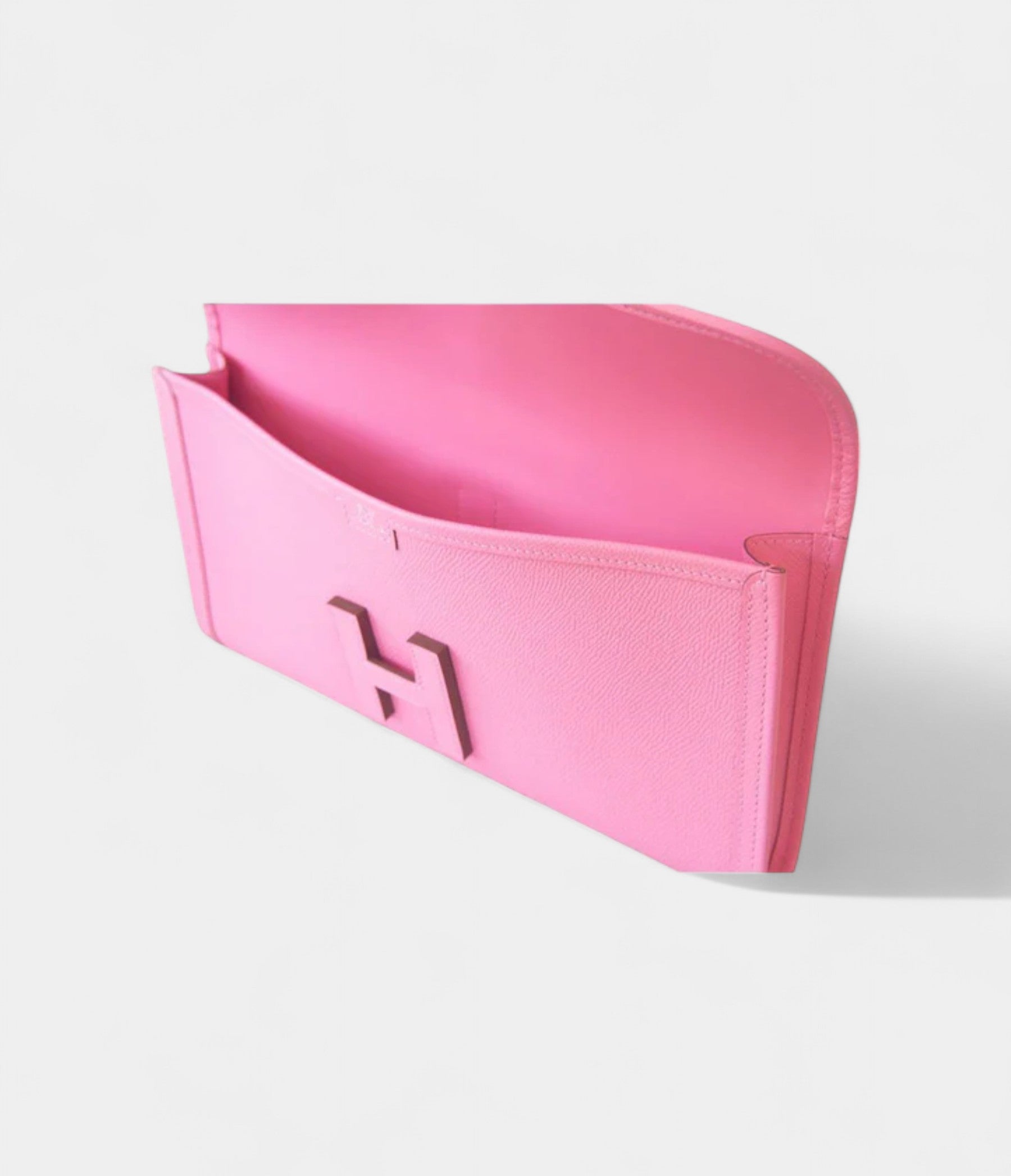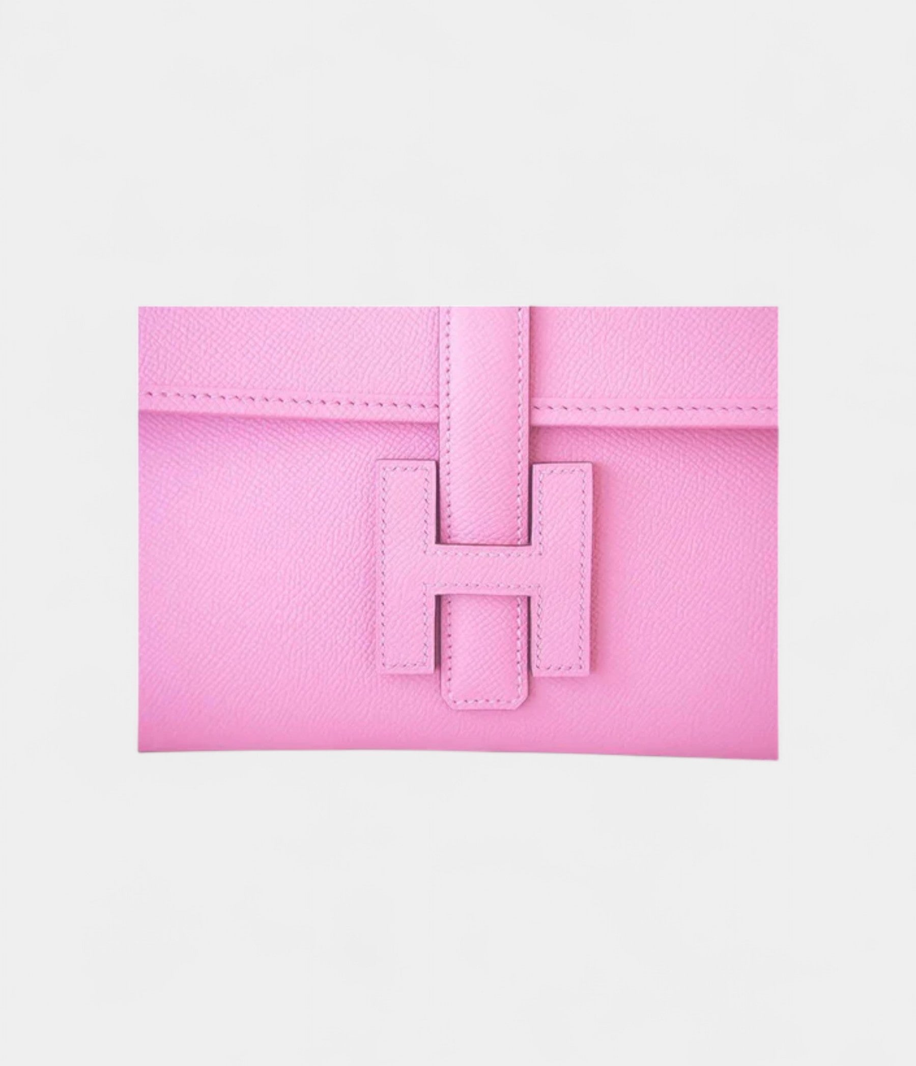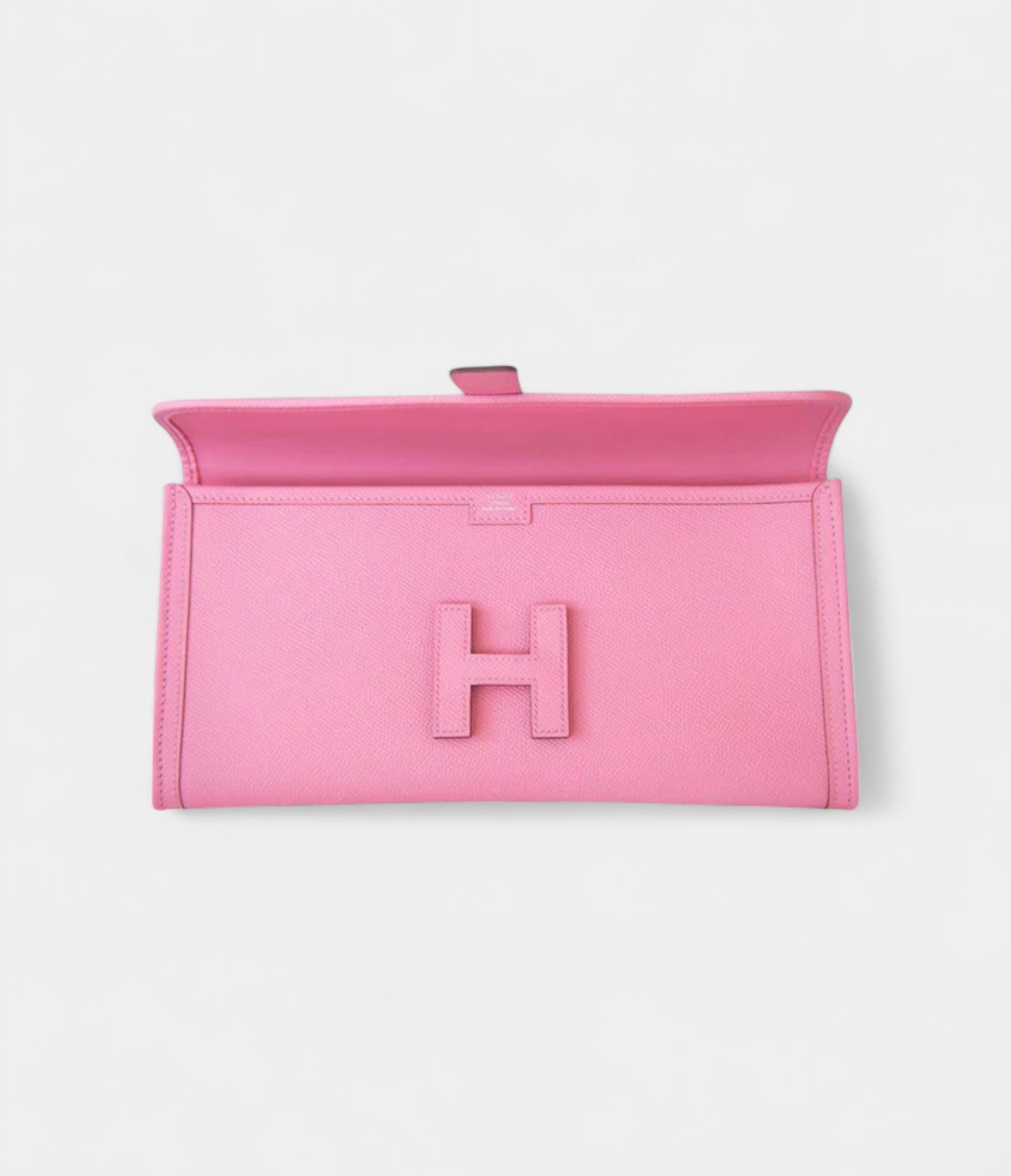 The Hermès Jige 29 Clutch in Rose Confetti is a vibrant and sophisticated piece that combines bold color with the brand's signature elegance. Crafted from premium leather, this clutch features a sleek, minimalist design that is both modern and timeless.