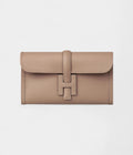 The Hermès Jige Elan 29 H Clutch in Gris Étain is a sophisticated and timeless accessory, crafted from luxurious leather with exceptional attention to detail. The deep, rich Gris Étain color, a perfect blend of grey and taupe, offers a versatile yet elegant tone that complements both casual and formal outfits.