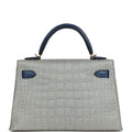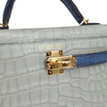 Hermes Special Order (HSS) Kelly Sellier 20 Gris Perle and Bleu de Malte Matte Alligator Gold Hardware