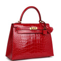Hermes Kelly 25 Sellier Braise Shiny Alligator Mississippiensis Gold Hardware