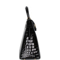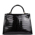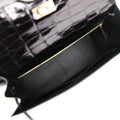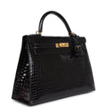 Hermes Kelly Sellier 32 Black Shiny Porosus Crocodile Gold Hardware