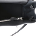 The interior is lined in Black chevre leather and has one zip pocket with Hermes engraved pull and one open pocket on rear wall. There's also one zip pocket on the back exterior of the bag with an Hermes engraved pull.