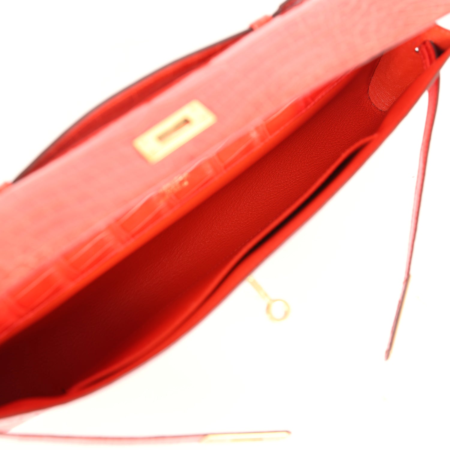 Hermes Kelly Cut Orange Poppy Shiny Porosus Crocodile Gold Hardware