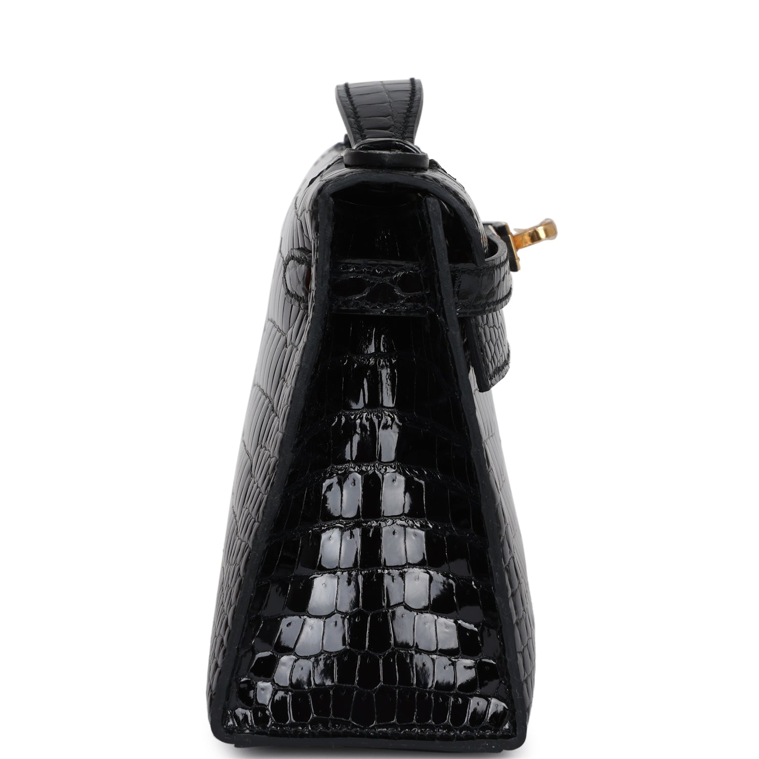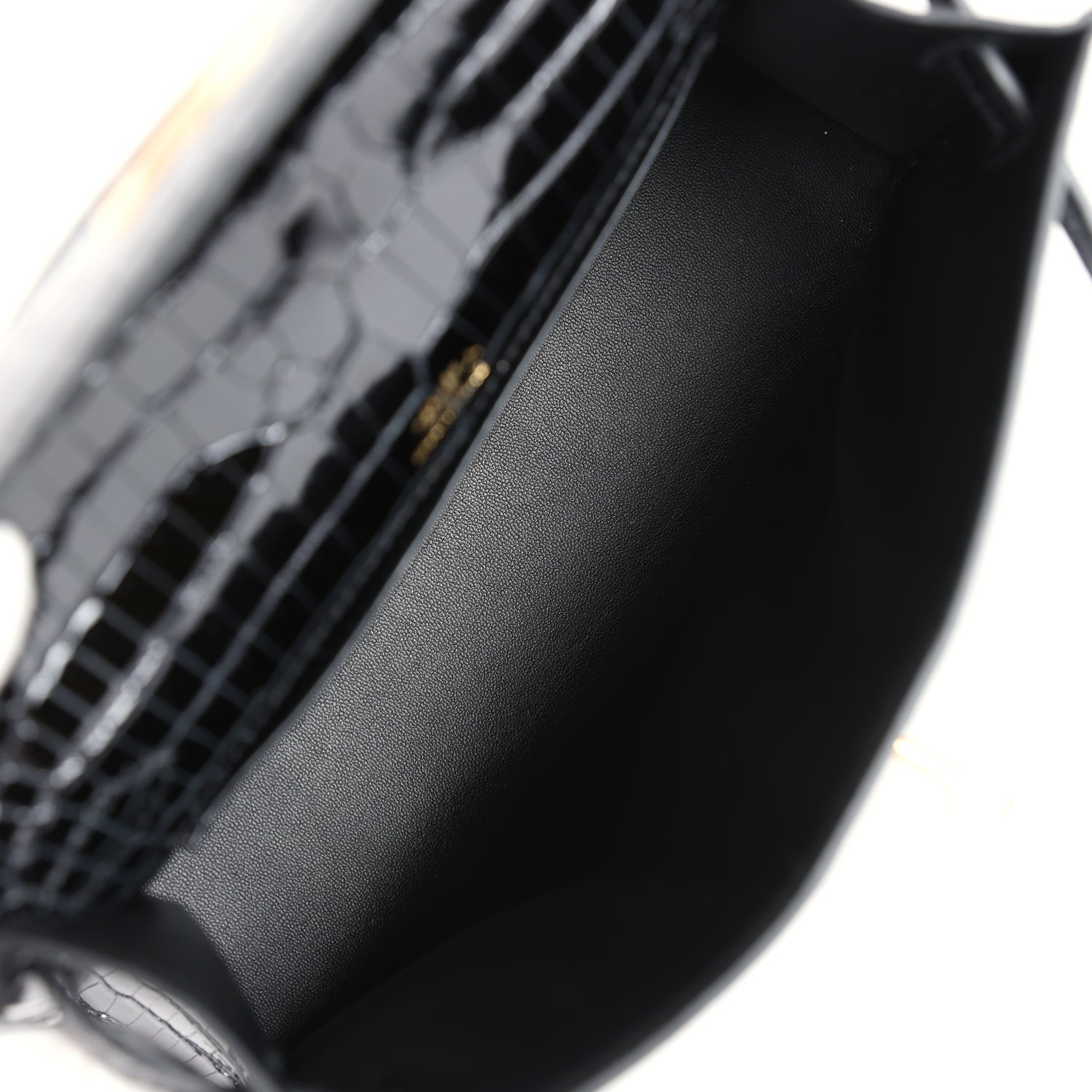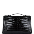 Hermes Kelly Pochette Black Shiny Porosus Crocodile Gold Hardware
