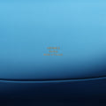 The interior is lined with Bleu Celeste lambskin and has an open wall pocket.