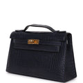 Hermes Kelly Pochette Bleu Indigo Matte Alligator Gold Hardware