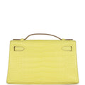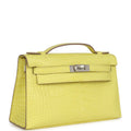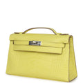 Hermes Kelly Pochette Lime Matte Alligator Palladium Hardware