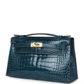 Hermes Kelly Pochette Vert Bosphore Shiny Alligator Gold Hardware