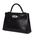 Hermes Kelly Sellier 20 Black Varanus Niloticus Lizard Palladium Hardware