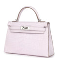 Hermes Kelly Sellier 20 Mauve Pale Boreal Satin Alligator Palladium Hardware