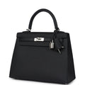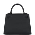 Hermes Kelly Sellier 25 Black Epsom Palladium Hardware