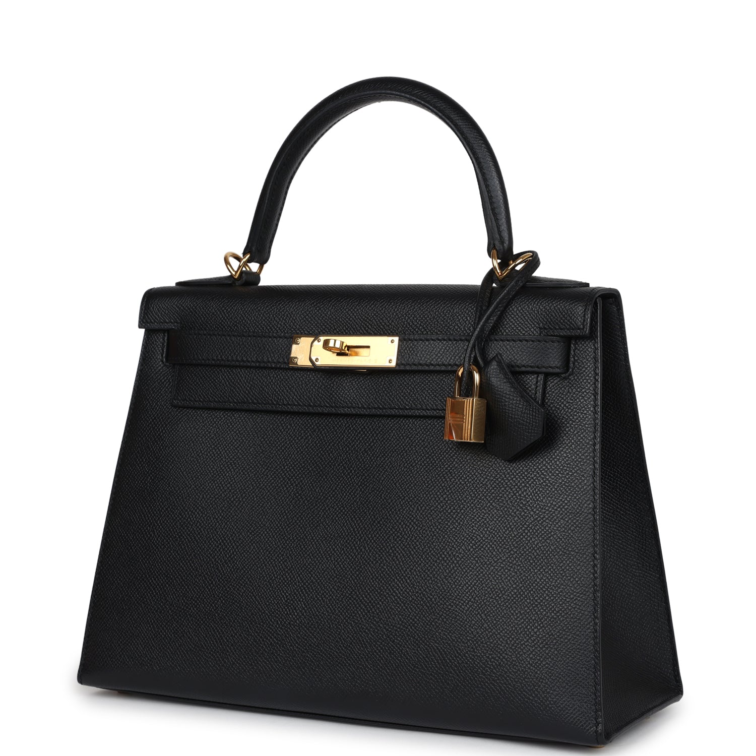 Hermes Kelly Sellier 28 Black Epsom Gold Hardware