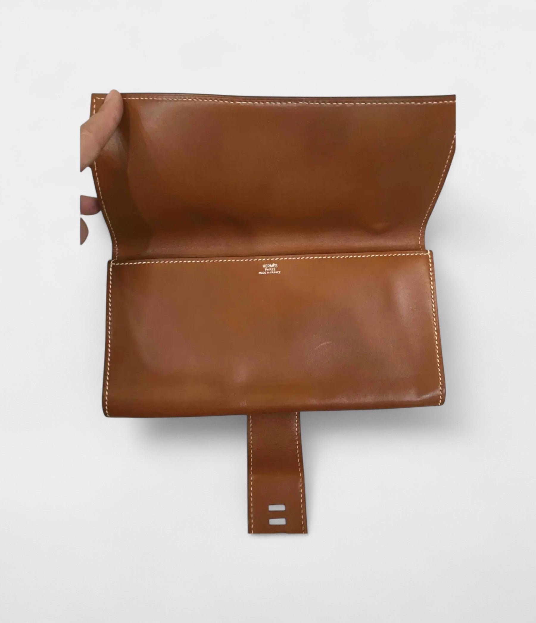 Hermès Médor Camel Leather Clutch Bag