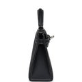 This Special Order Verso Kelly, in the Sellier style, is in Black Epsom leather with Palladium hardware, has contrast stitching, two front straps with front toggle closure, single rolled handle and removable shoulder strap.