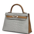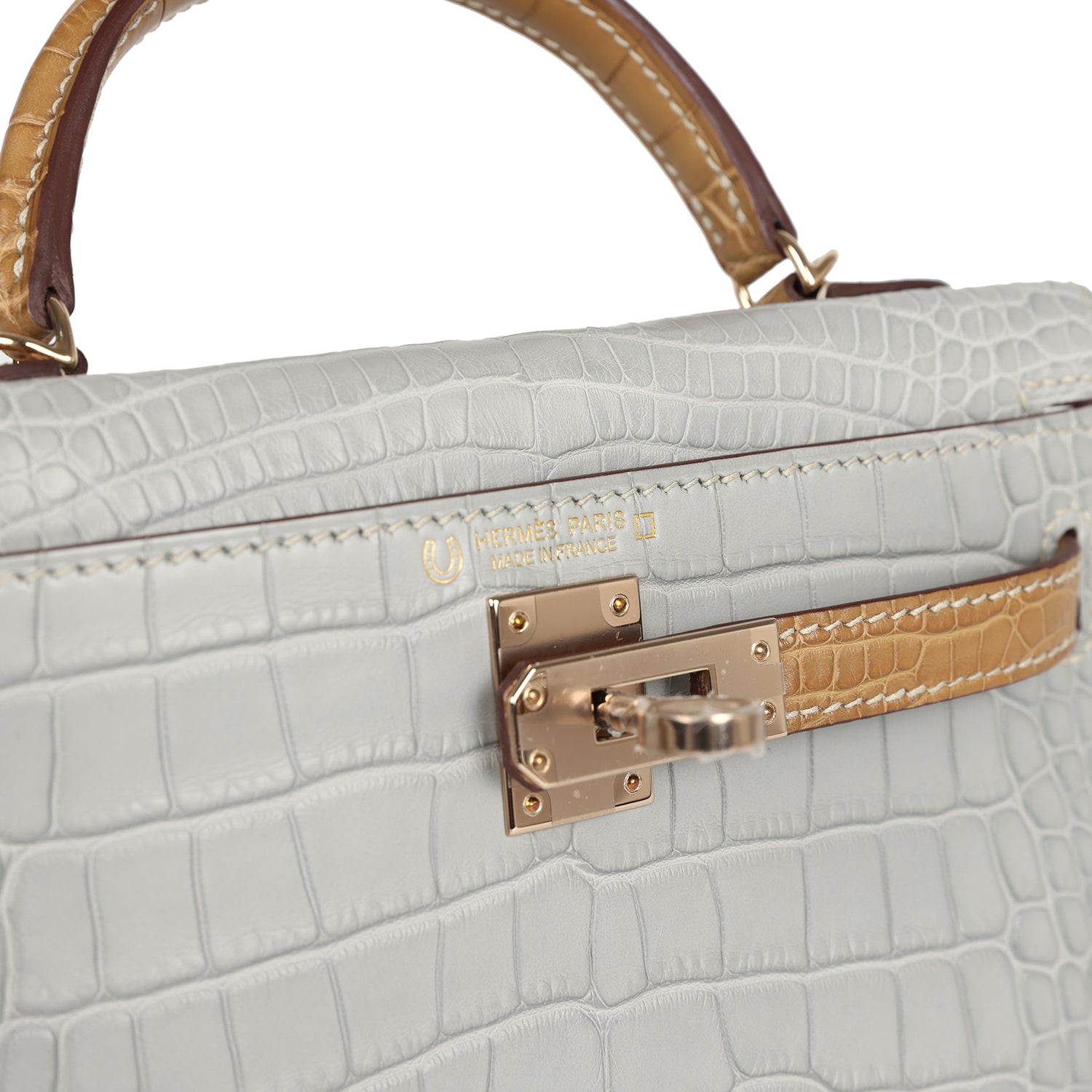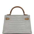 Hermes Special Order (HSS) Kelly Sellier 20 Gris Perle and Kraft Matte Alligator Permabrass Hardware