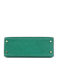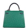 Hermes Kelly Sellier 25 Vert Vertigo and Bleu Iris Ostrich Brushed Gold Hardware