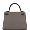 Hermes Special Order (HSS) Kelly Sellier 28 Etain and Black Epsom Brushed Palladium Hardware