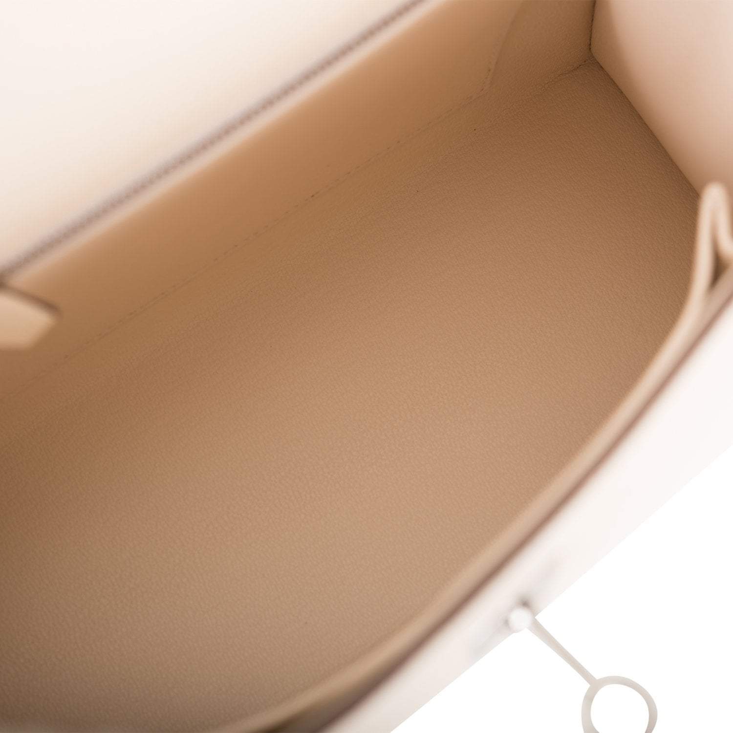 The interior is lined with Nata chevre leather and has one zip pocket with an Hermes engraved pull and one open pocket on the opposite side.