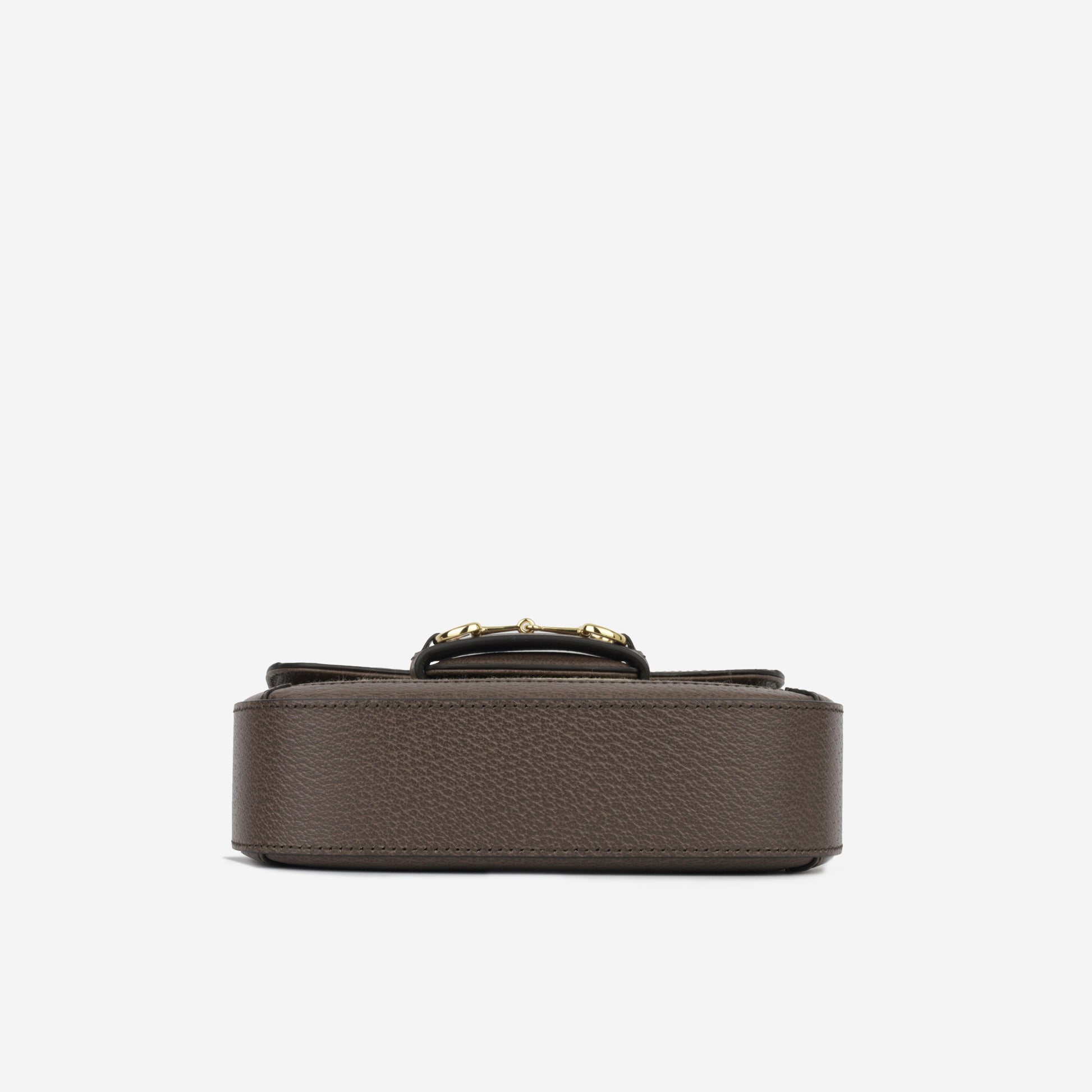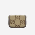 Part of the Gucci Horsebit 1955 collection, this shoulder bag stands out with its special hardware. The Jumbo GG monogram, a big version inspired by Guccio Gucci's initials, is prominently featured on the dark brown and ebony canvas.