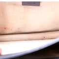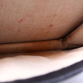 Exterior: The exterior leather is free of any major rips or tears. The edges show minor discoloration. The leather has light scuffs.