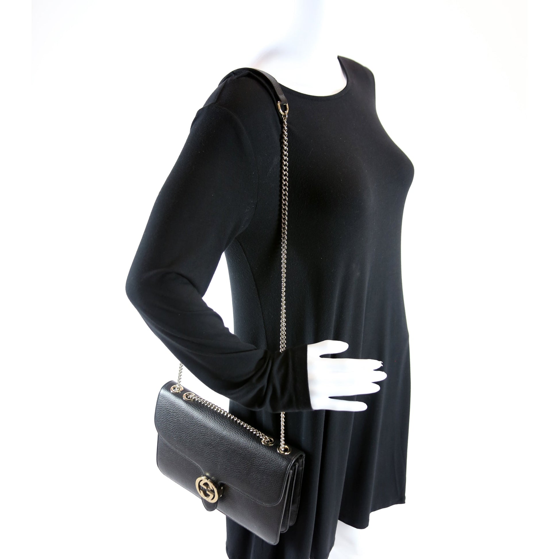 This Gucci Interlocking GG Shoulder Bag is d to be 100% . The exterior is in the classic Gucci pebble grain leather.