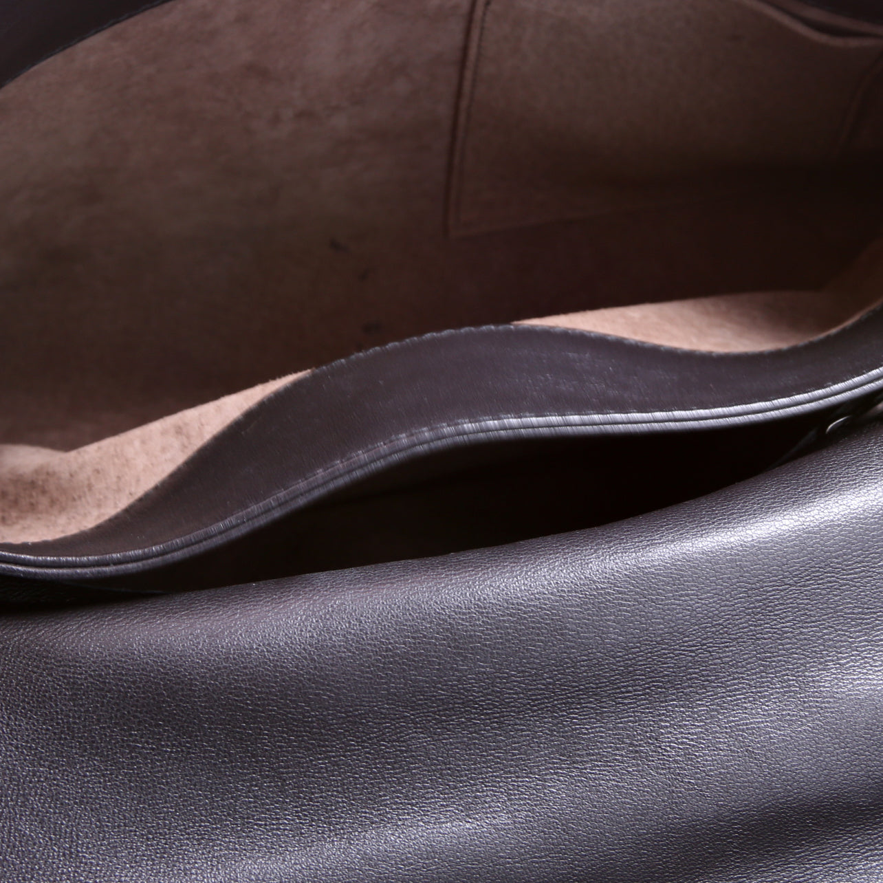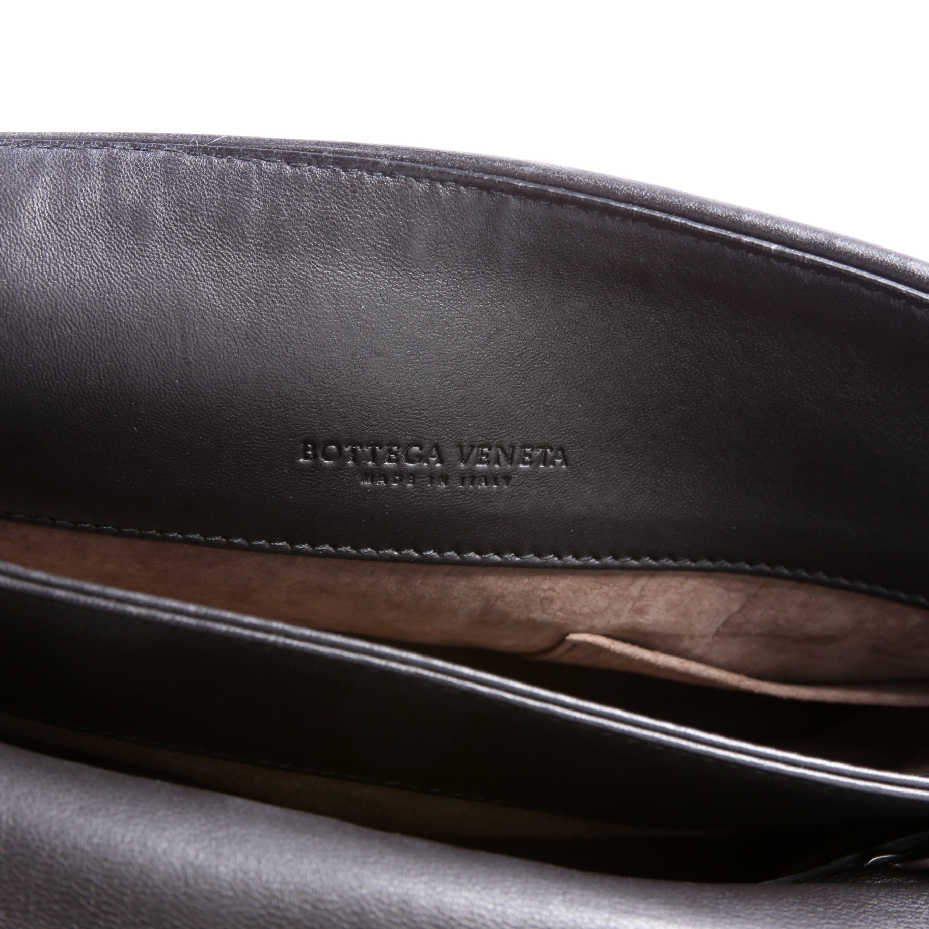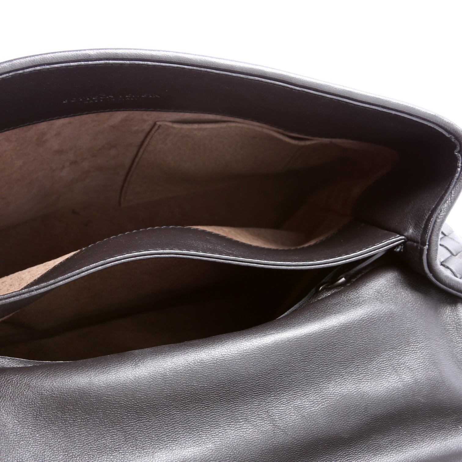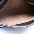 Interior: The interior leather shows minor scuffs. The interior features one zip closure pocket and one open pocket.