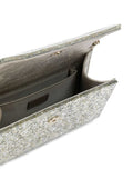 Clutch All-over coarse glitter embellishment Asymmetric flap with lettering Ribbed acrylic panelling Detachable chain shoulder strap Magnetic fastening under front flap One internal main compartment One internal slit pocket Logo patch on the inside Satin lining Acrylic Dimensions: 17x11x4 cm Tracolla: 55 cm