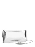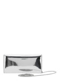 Clutch Metallic One removable chain-link shoulder strap Foldover top Magnetic closure Logo lettering on the front Silver tone metalware Envelope design Leather and fabric Dimensions: 22x11x2,5 cm
