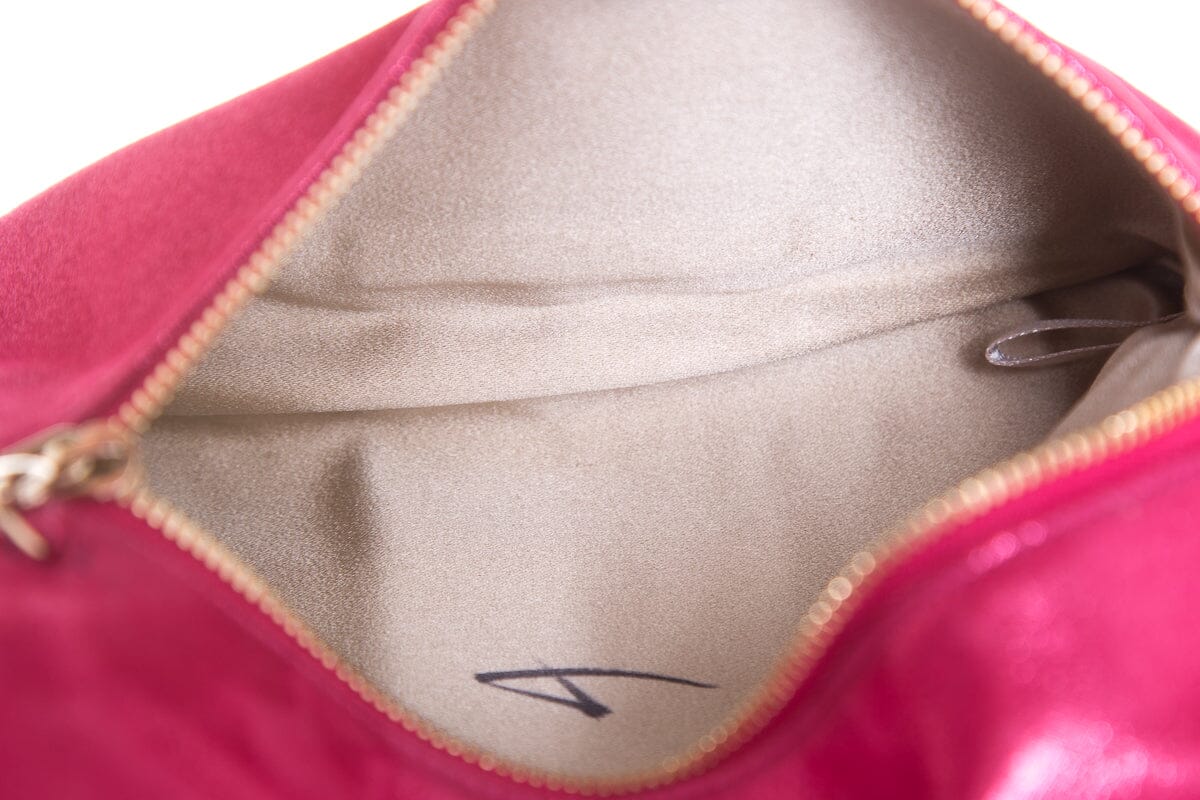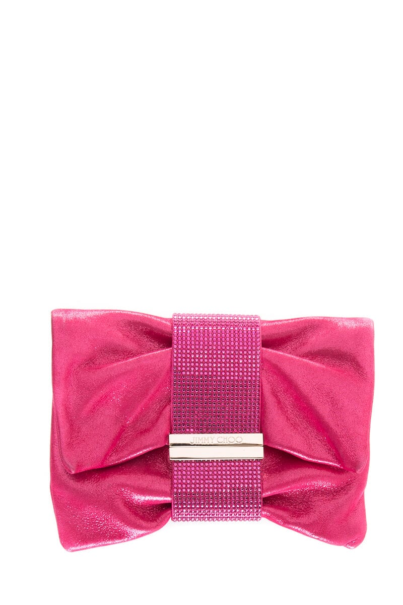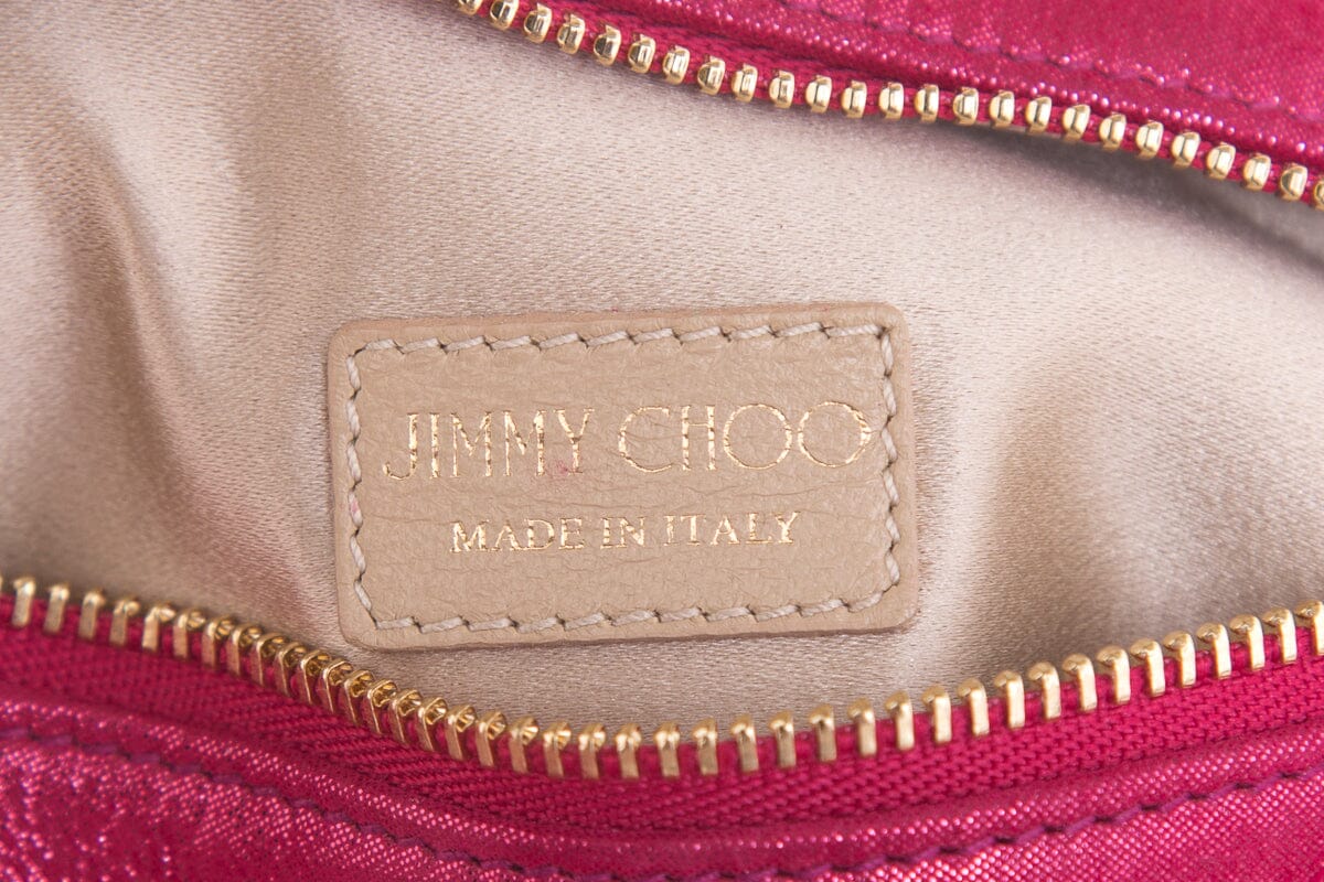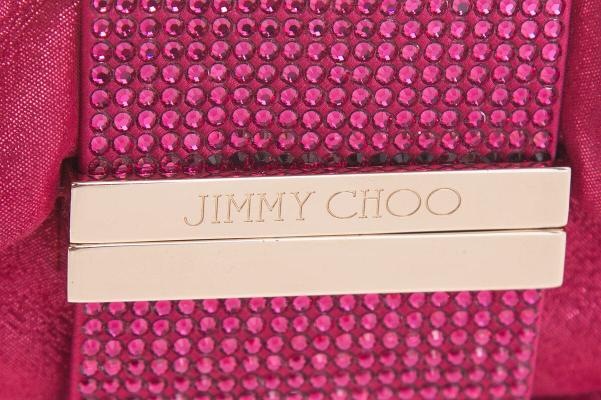 Jimmy Choo Pink Crystal Detail Handbag. This item is in good condition; ink mark on lining and some scratching on hardware.