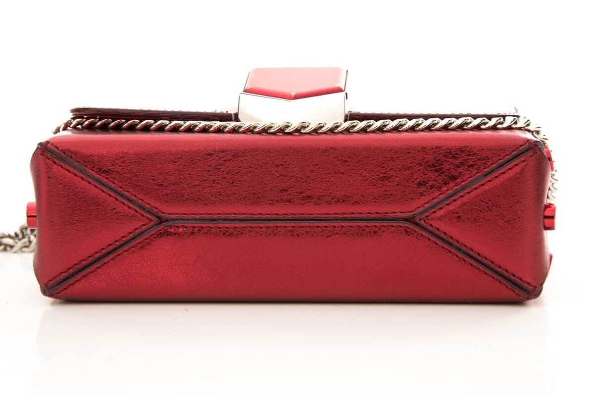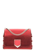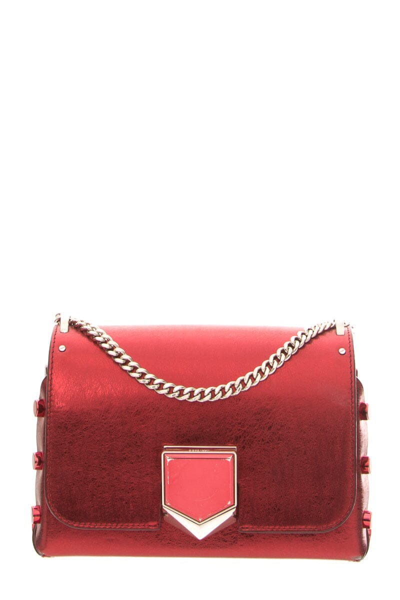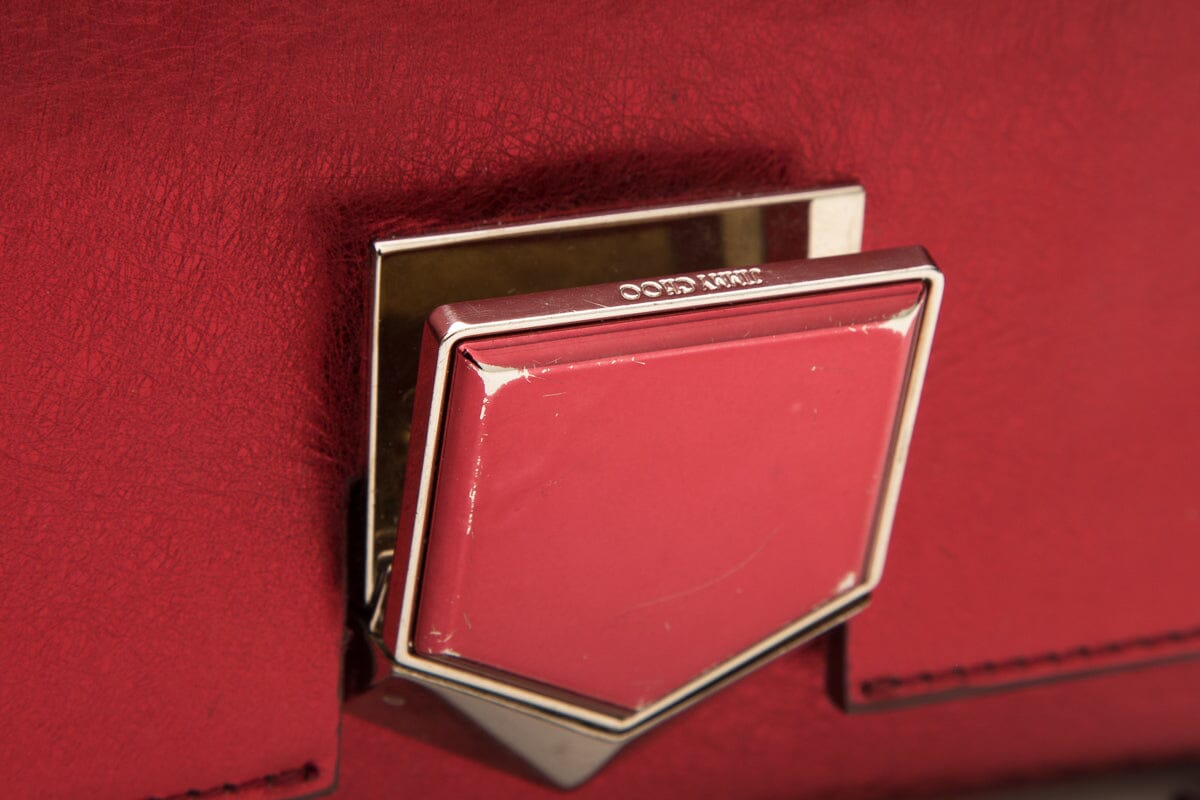 Jimmy Choo Red Lockett City Shoulder Bag. This item is in good condition with slight chipping/discoloring to hardware and wear to bottom corners.