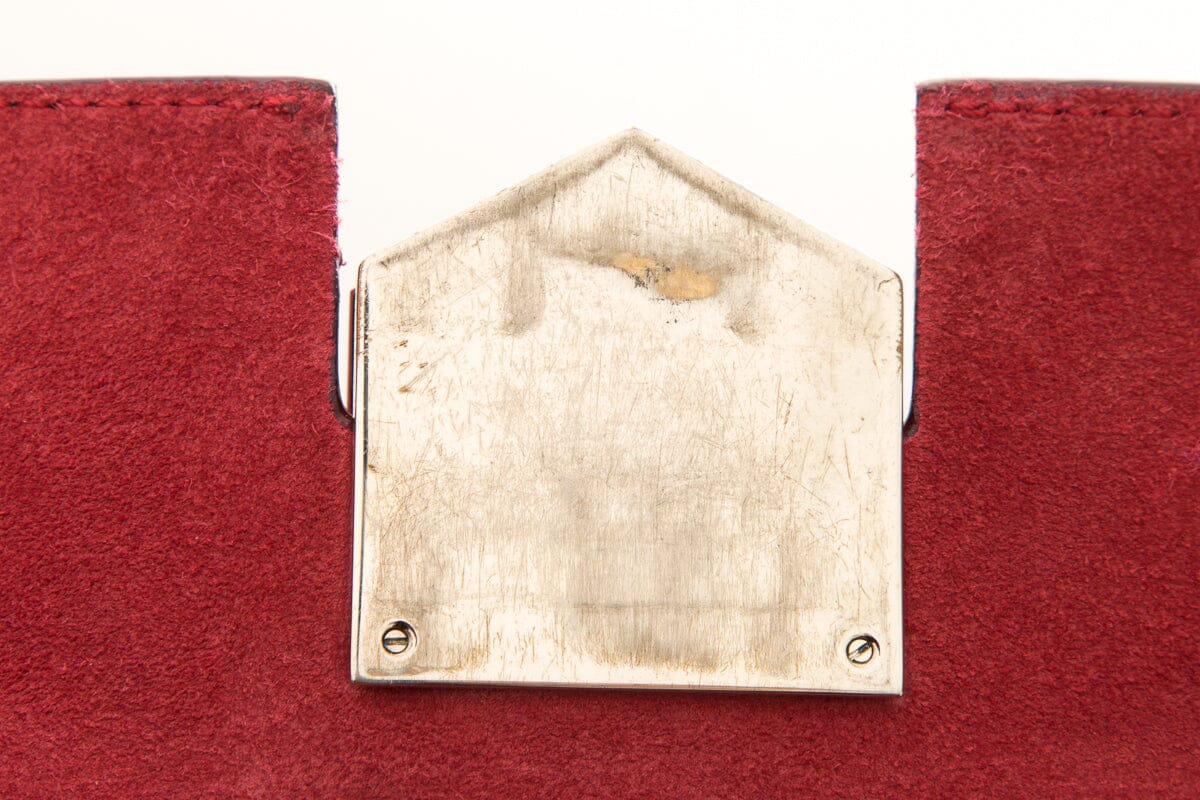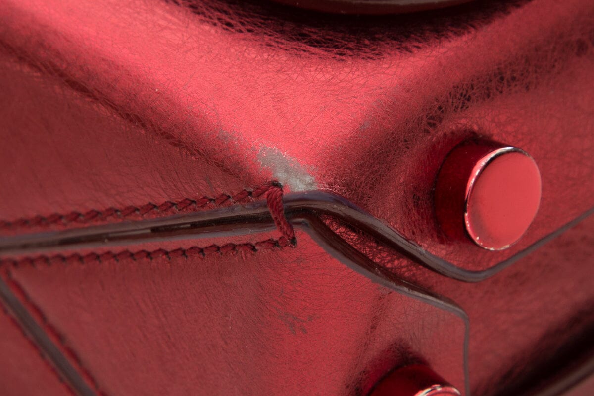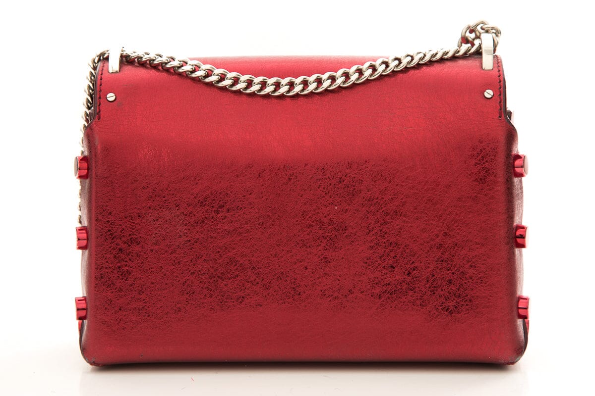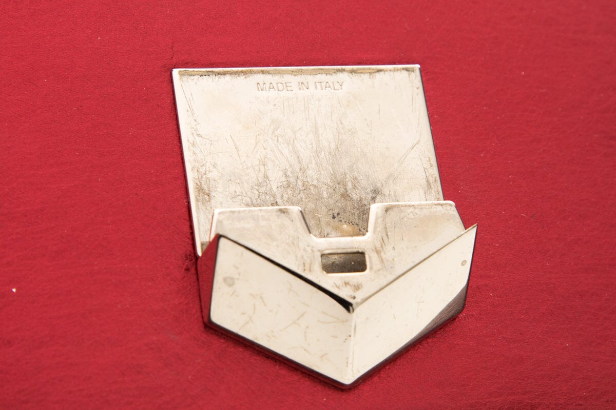 Jimmy Choo Red Lockett City Shoulder Bag. This item is in good condition with slight chipping/discoloring to hardware and wear to bottom corners.