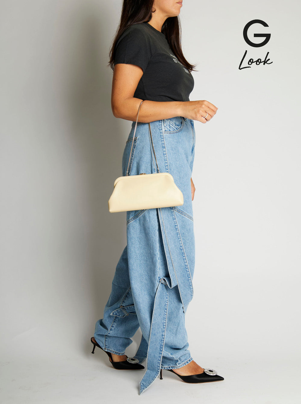 Clutch White Chain-link shoulder strap Kiss-lock closure with logo plaque Gold tone metalware Smooth grain Leather Dimensions: 29x13x6 cm Strap drop: 26,5 cm