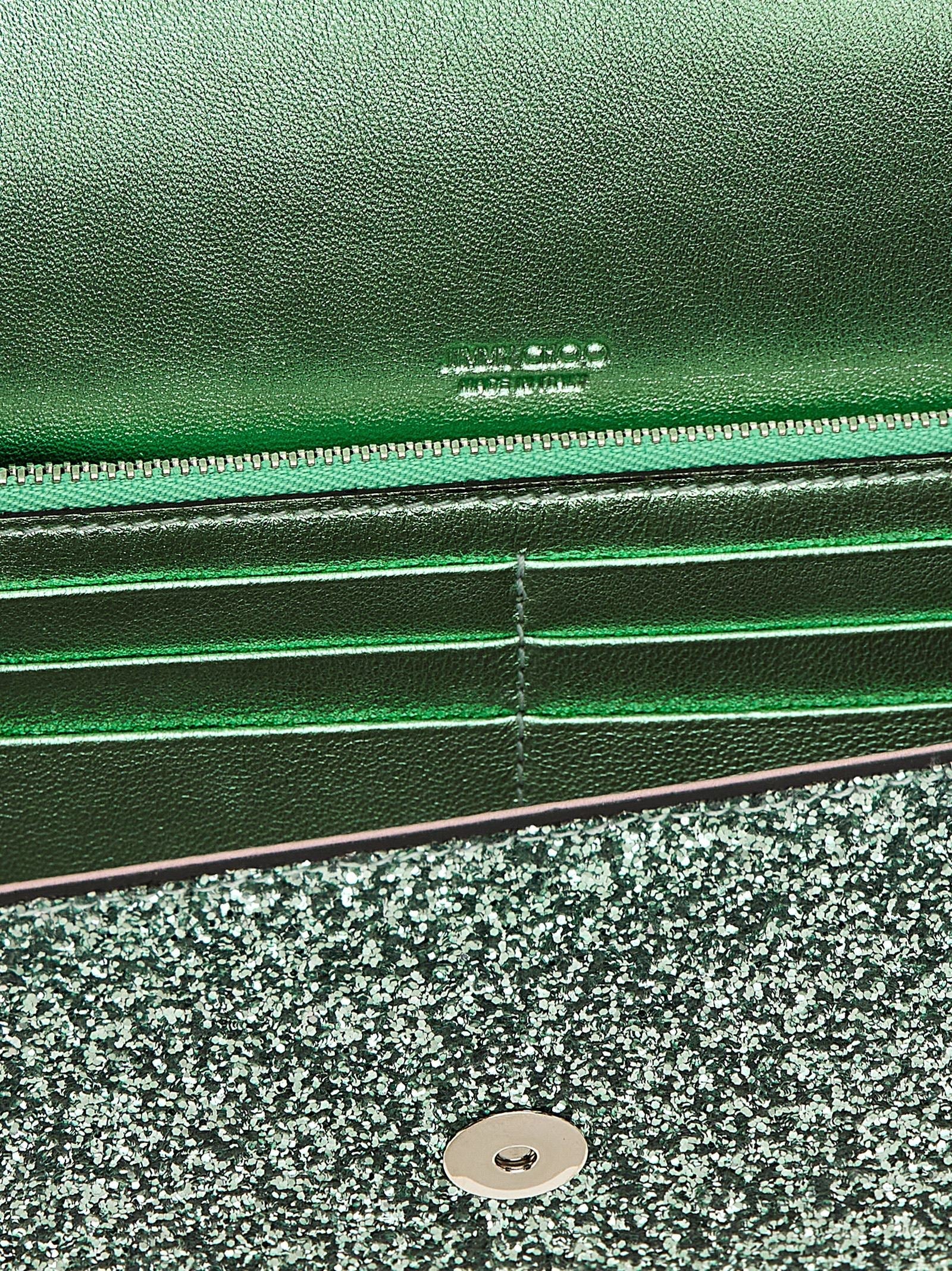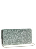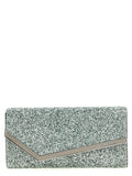 Emmie' clutch bag in glitter fabric with metal details, magnetic flap closure, removable chain shoulder strap.