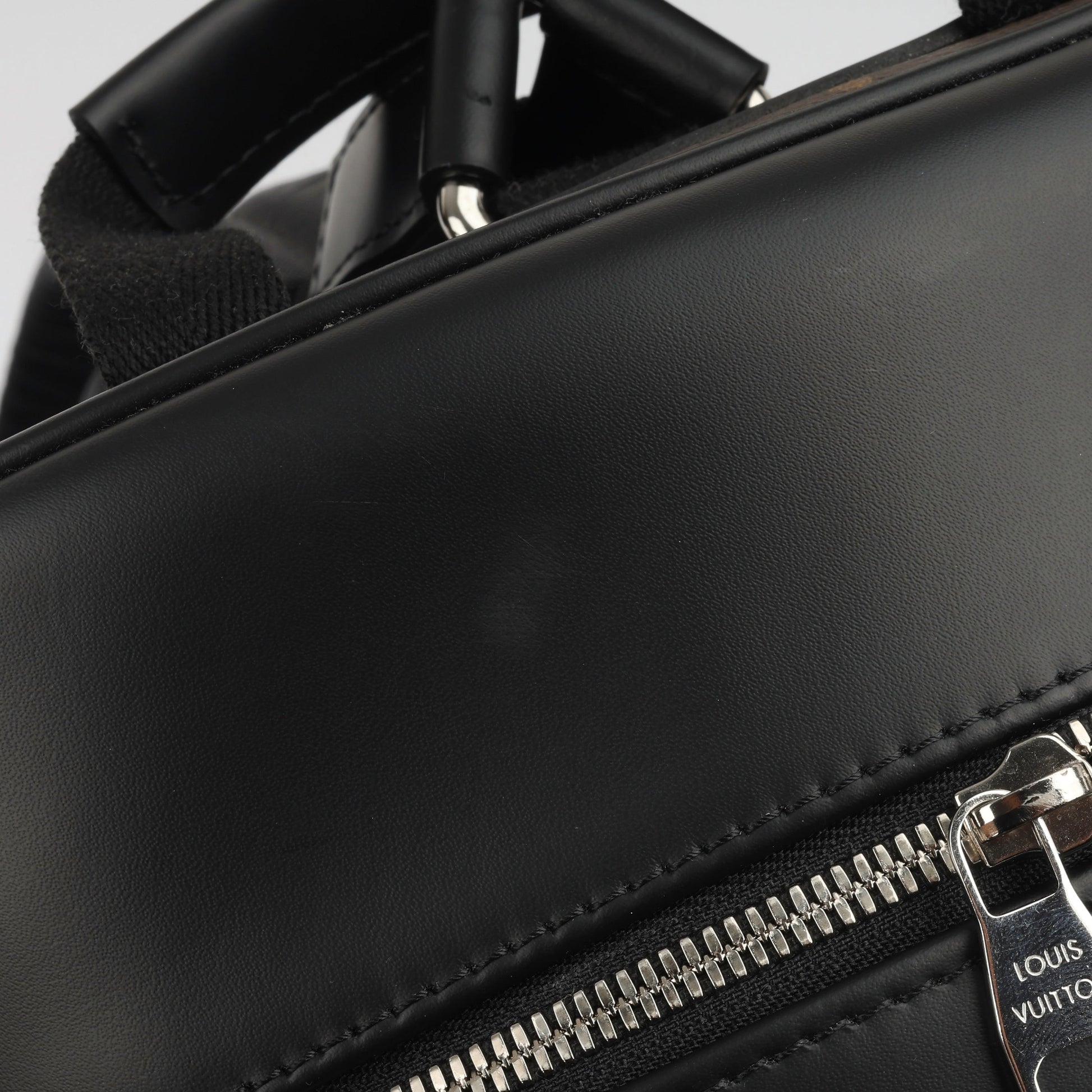 - Louis Vuitton embossed leather logo
