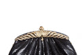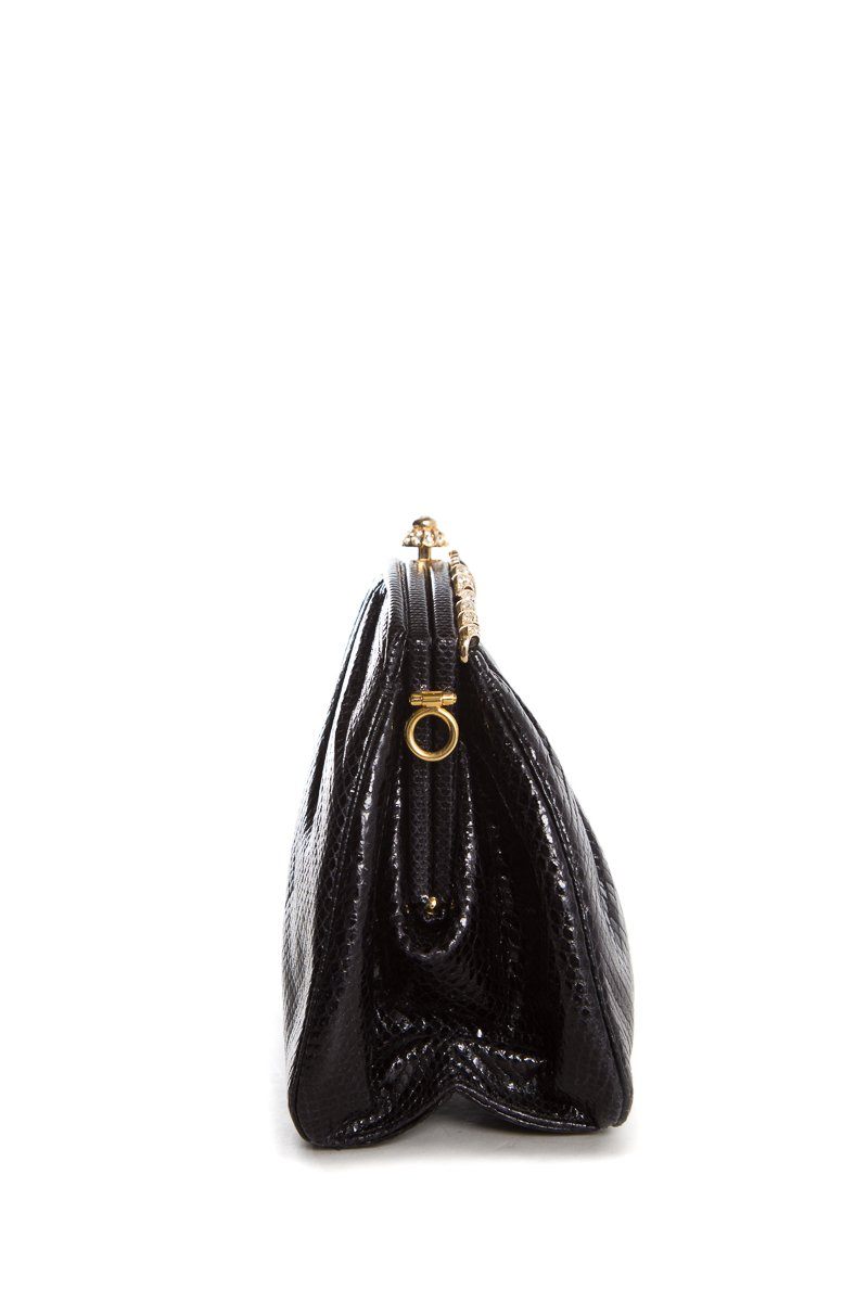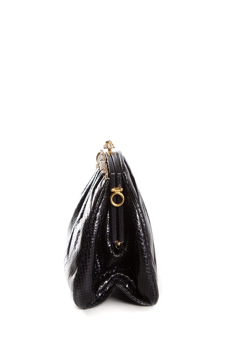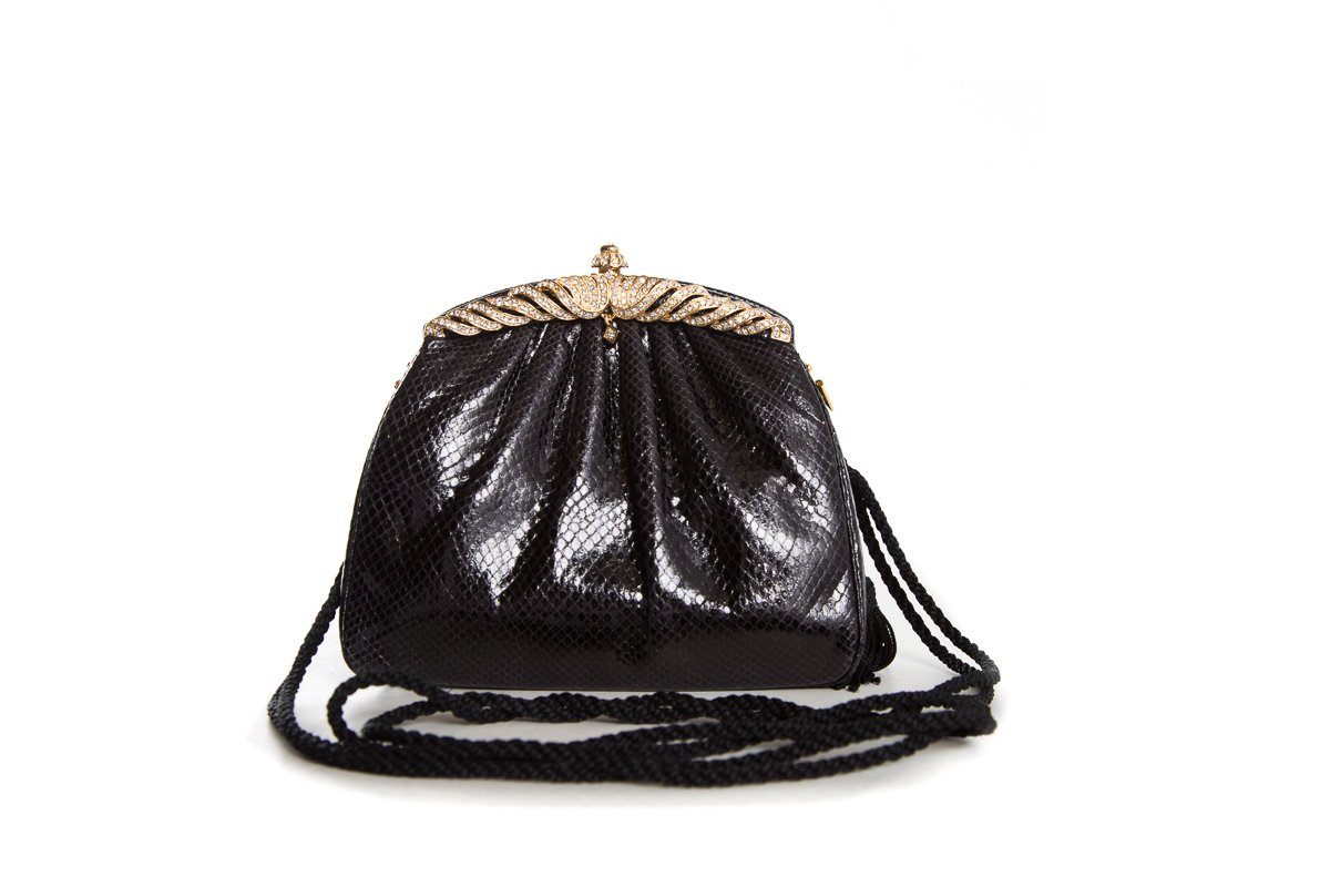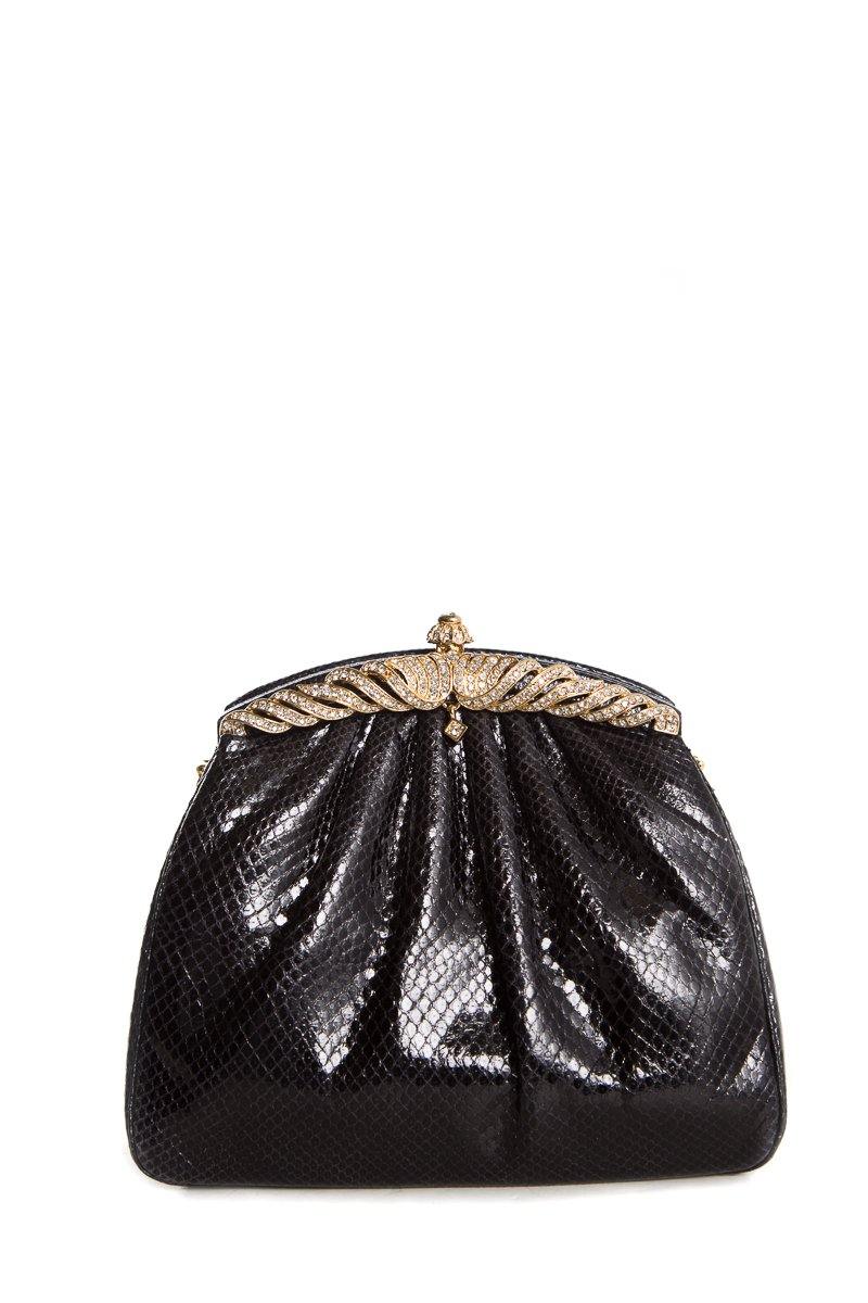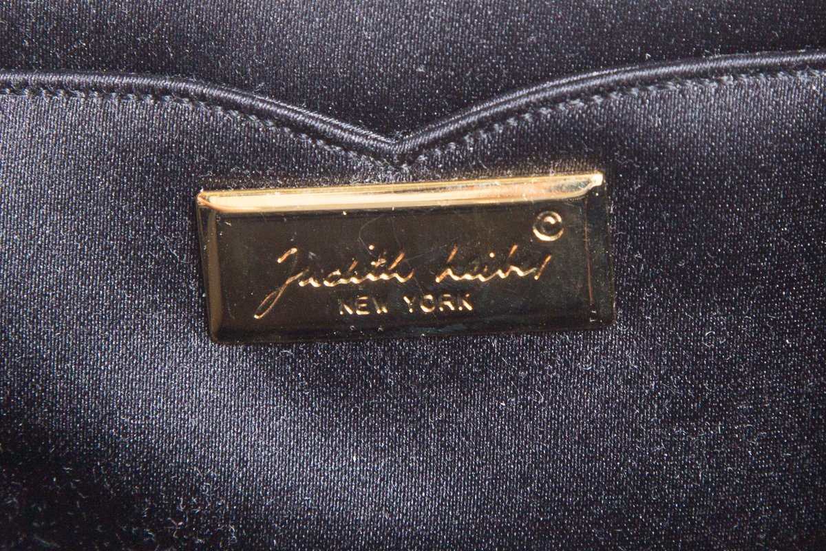 Judith Leiber clutch bag with gold-tone hardware, single shoulder strap, tonal satin interior lining, single slip pocket at interior and push-lock closure at top.
