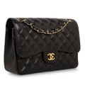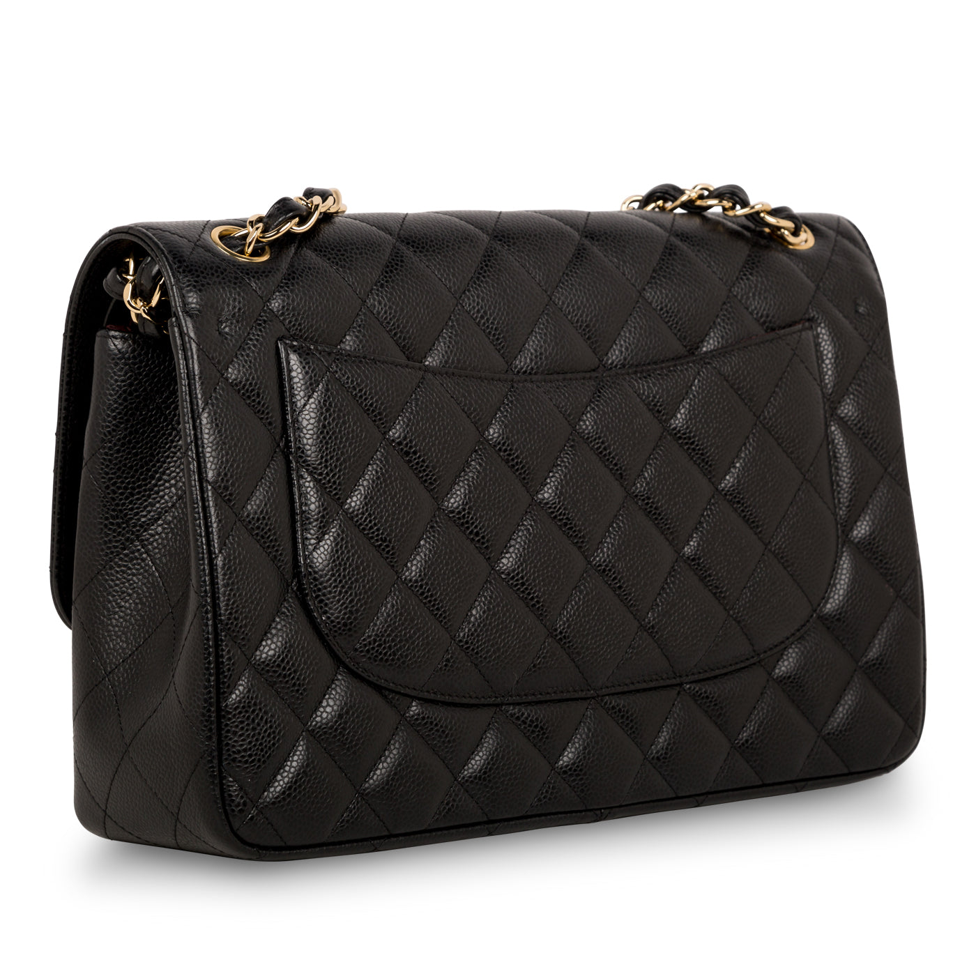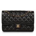 Chanel continues to present its signature line of Classic Flap bags. Under the creative direction of Karl Lagerfeld, the Classic Flap is perhaps the most acclaimed bag in all of fashion history. Timeless, elegant and sophisticated, it's no wonder the Classic Flap is, well, a classic. Featuring its renowned buttery soft lambskin leather and interwoven chain/leather strap, the Jumbo is an absolute must-have in any luxury handbag collection. Not only is this highly coveted, stunning black bag the perfect compliment to pretty much anything you have in your wardrobe, but it's also an investment piece that will never lose its value. Embodying elegance and traditional femininity to a T, a Chanel bag is a purchase you won't ever regret.