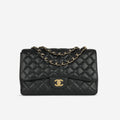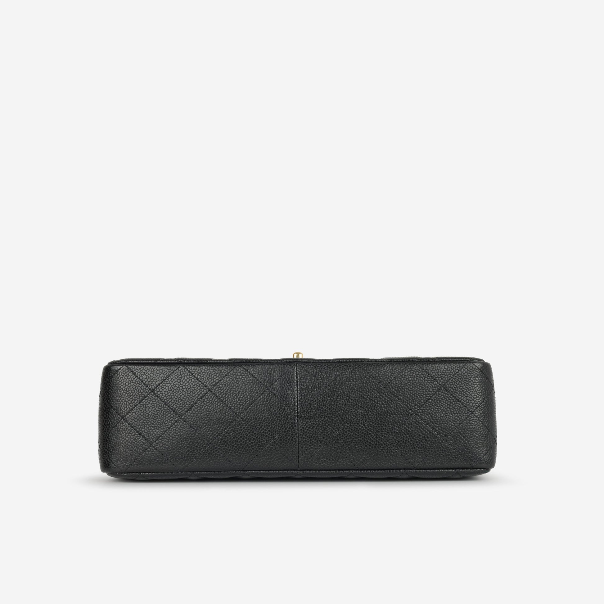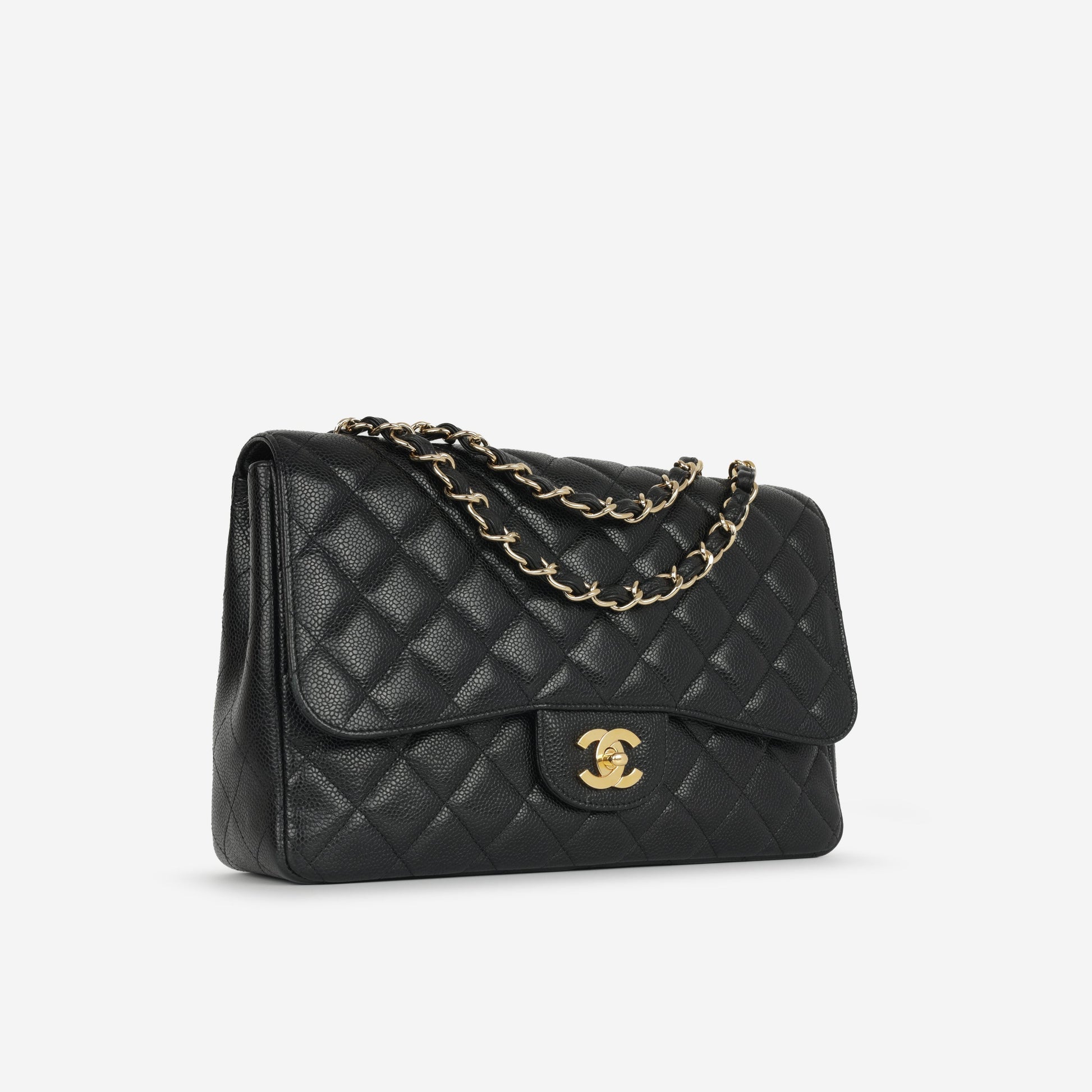 Chanel continues to present its signature line of Classic Flap bags. Under the creative direction of Karl Lagerfeld, the Classic Flap is perhaps the most acclaimed bag in all of fashion history. Timeless, elegant and sophisticated, it's no wonder the Classic Flap is, well, a classic. Featuring its infamous quilted caviar leather and interwoven chain / leather strap, the Jumbo is an absolute must-have in any luxury handbag collection. Not only is this highly coveted, stunning black bag the perfect compliment to pretty much anything you have in your wardrobe, but it's also an investment piece that will never lose its value.
