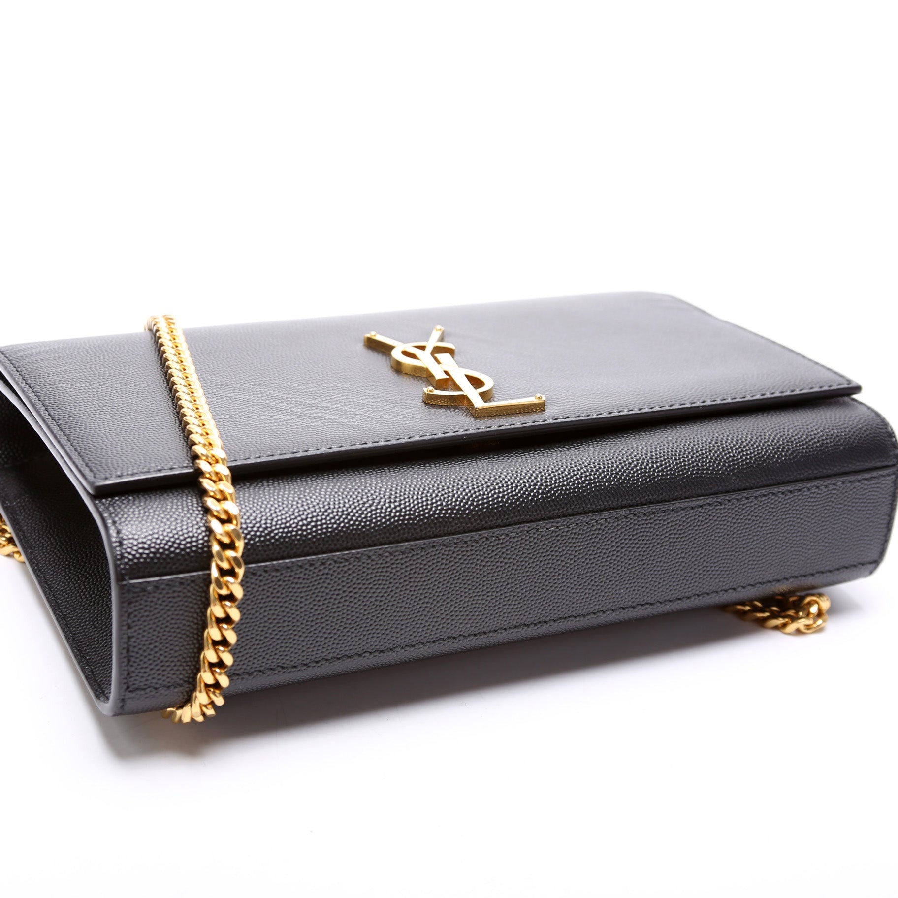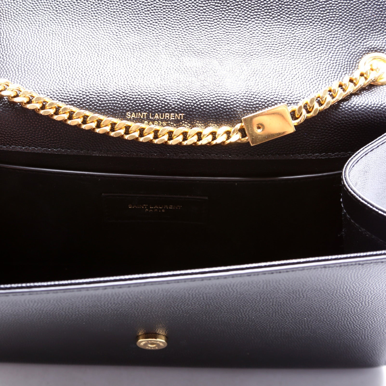 This Saint Laurent Kate Satchel Medium is d 100% . The exterior in in the classic Saint Laurent Grain leather.