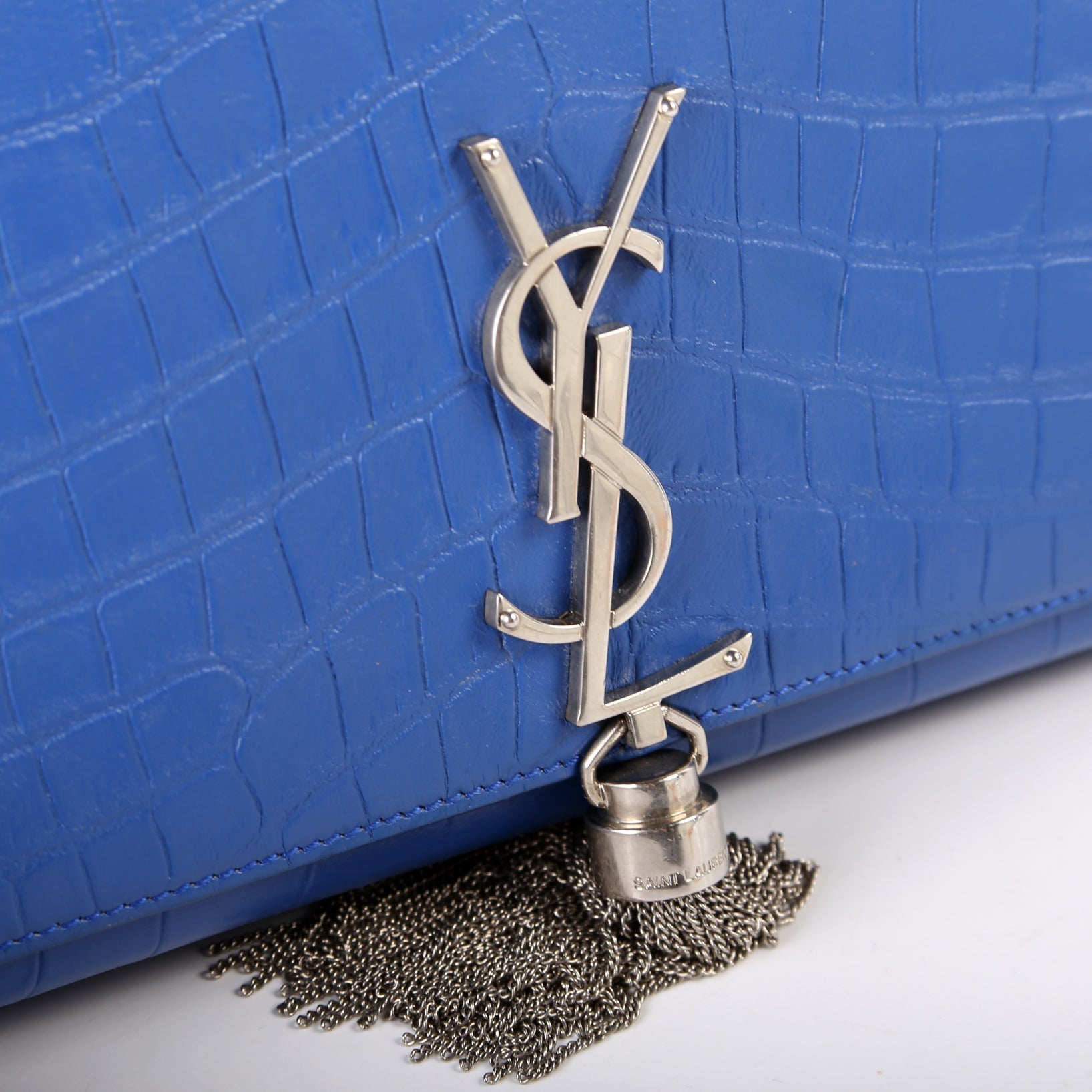 This Saint Laurent Kate Tassel Satchel Medium is The exterior is in the classic Saint Laurent Crocodile embossed leather.