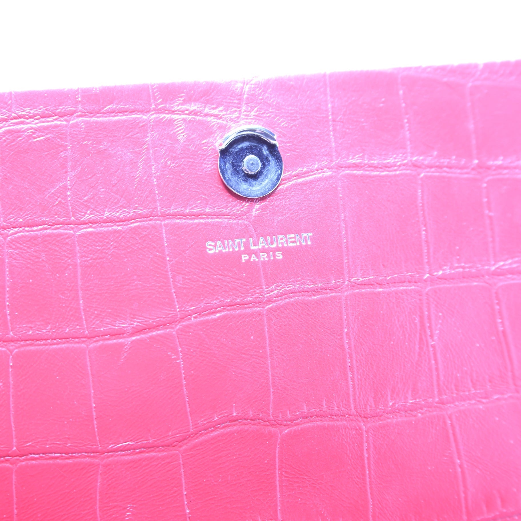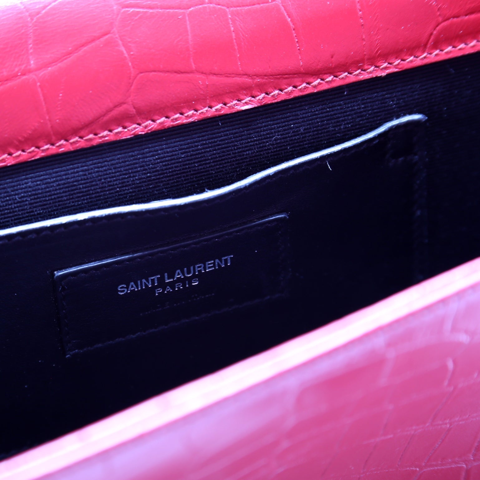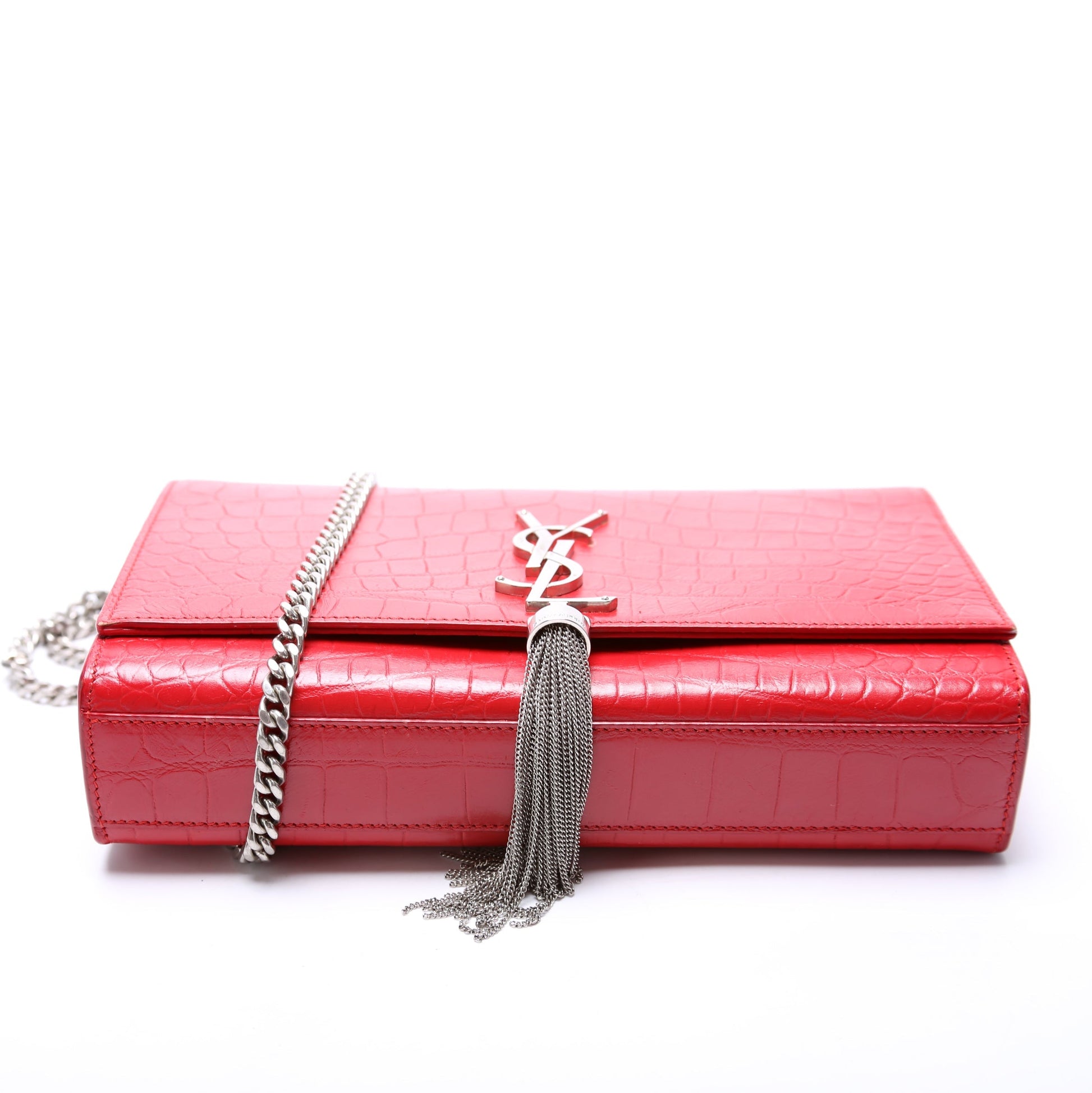 This Saint Laurent Kate Tassel Satchel Medium is d 100% . The exterior is in the classic Saint Laurent Crocodile Embossed leather.