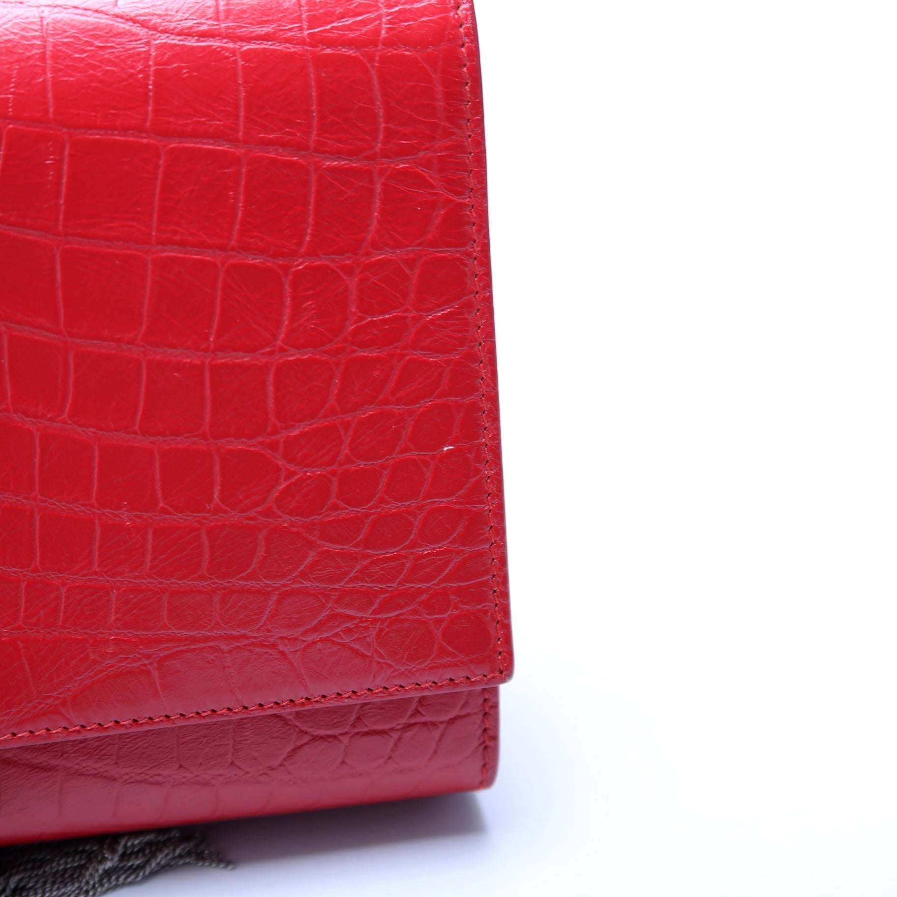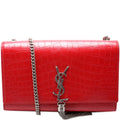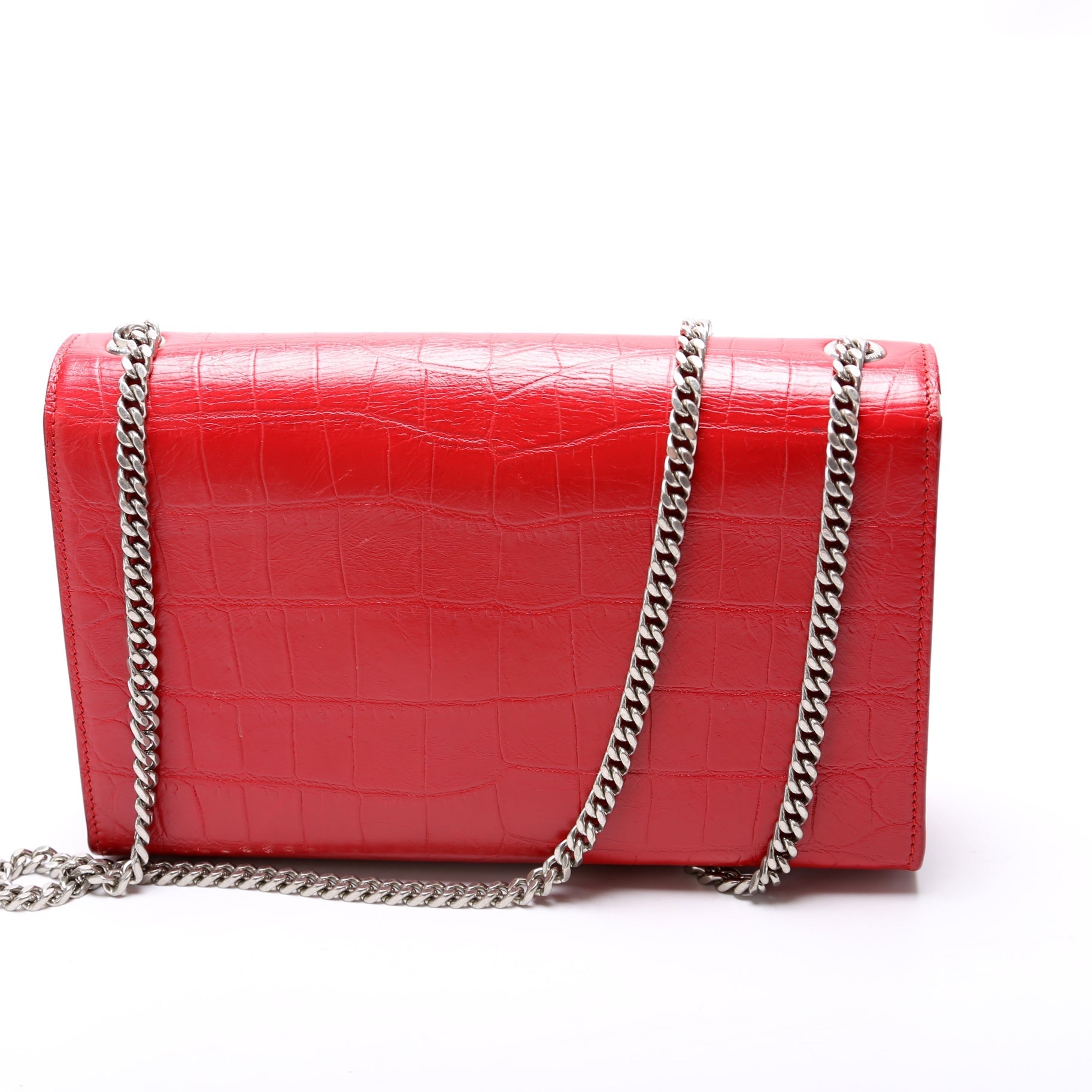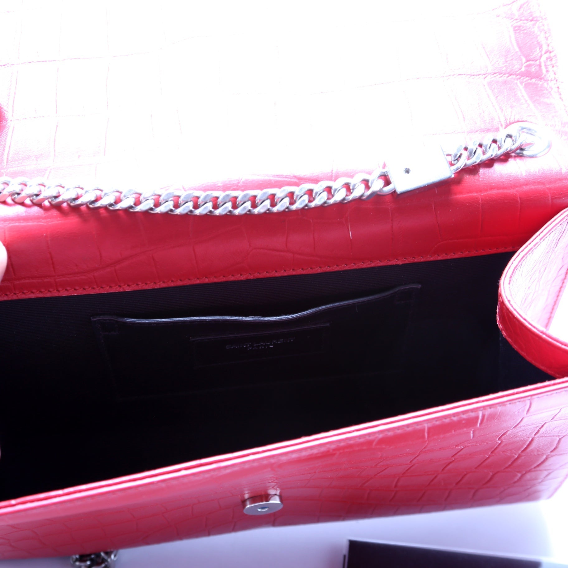 This Saint Laurent Kate Tassel Satchel Medium is d 100% . The exterior is in the classic Saint Laurent Crocodile Embossed leather.
