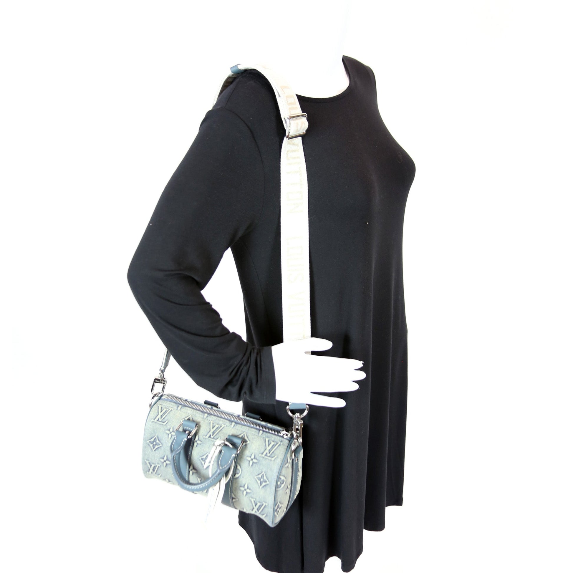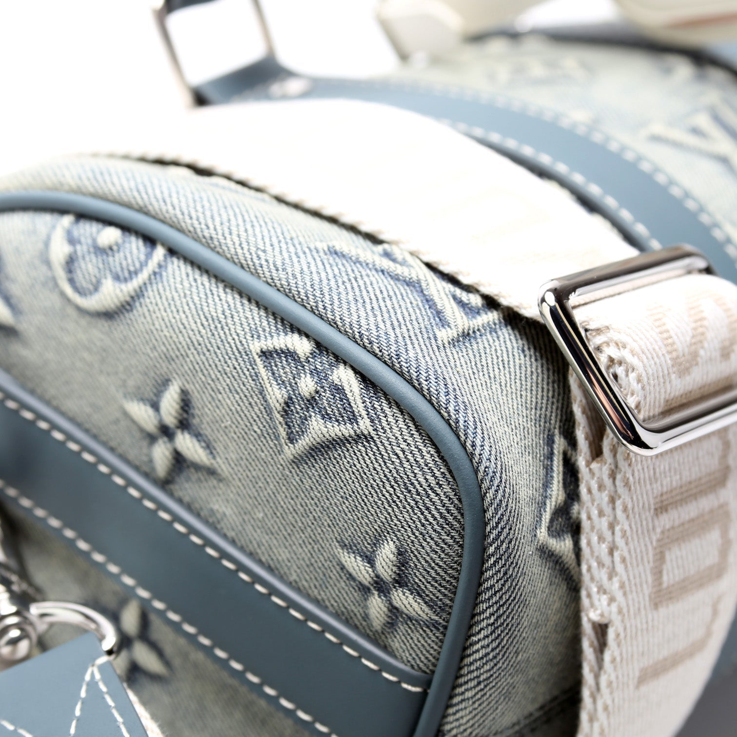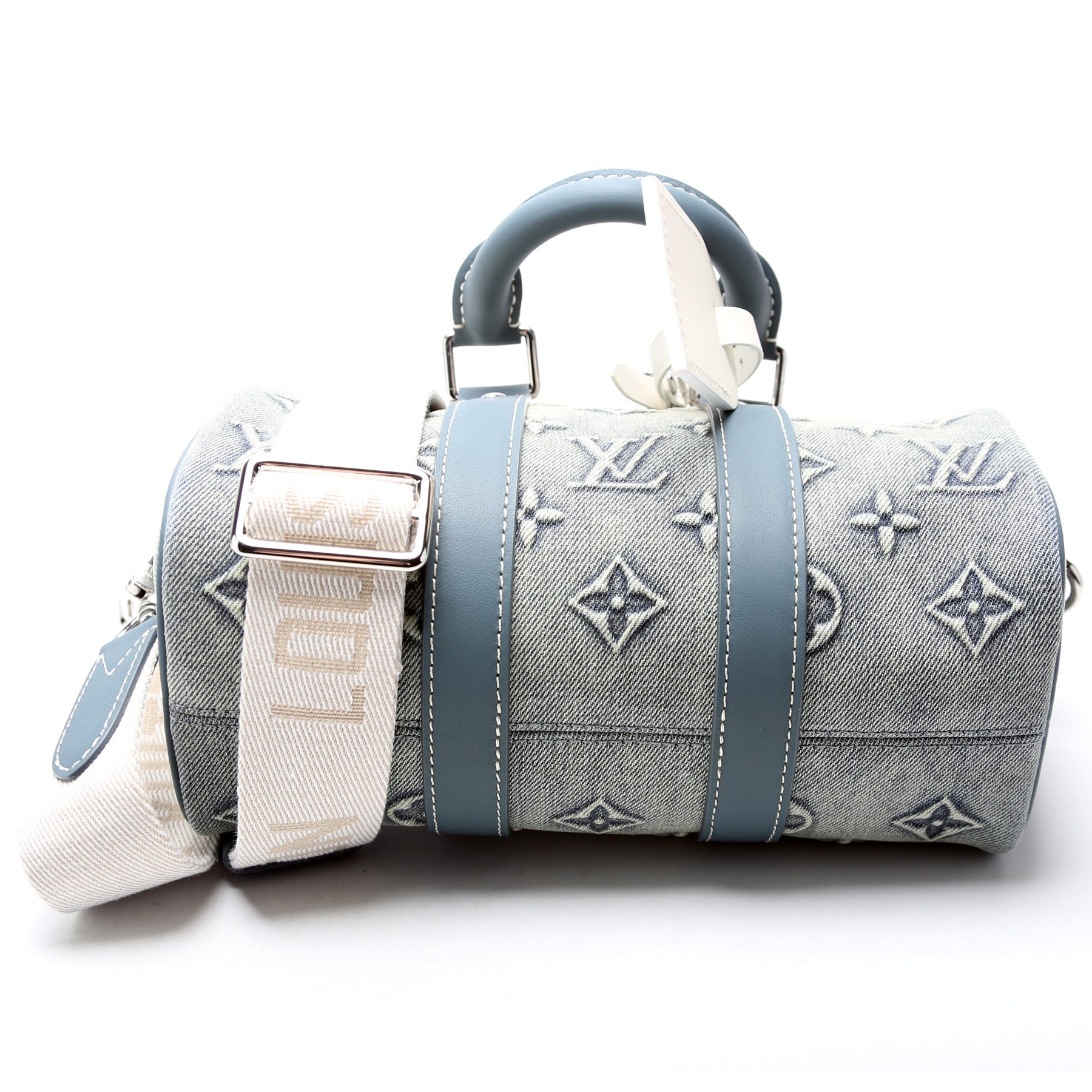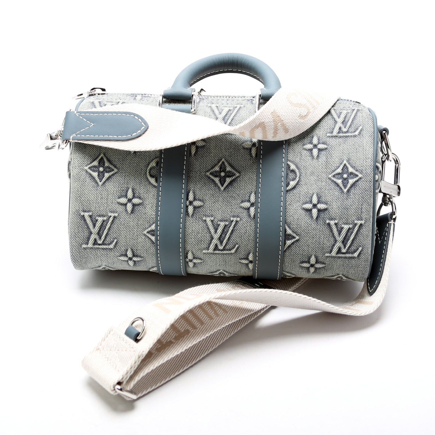 This Louis Vuitton Keepall 25 W/Strapis eye catching bag. The exterior is in the classic Louis Vuitton Denim Monogram canvas.