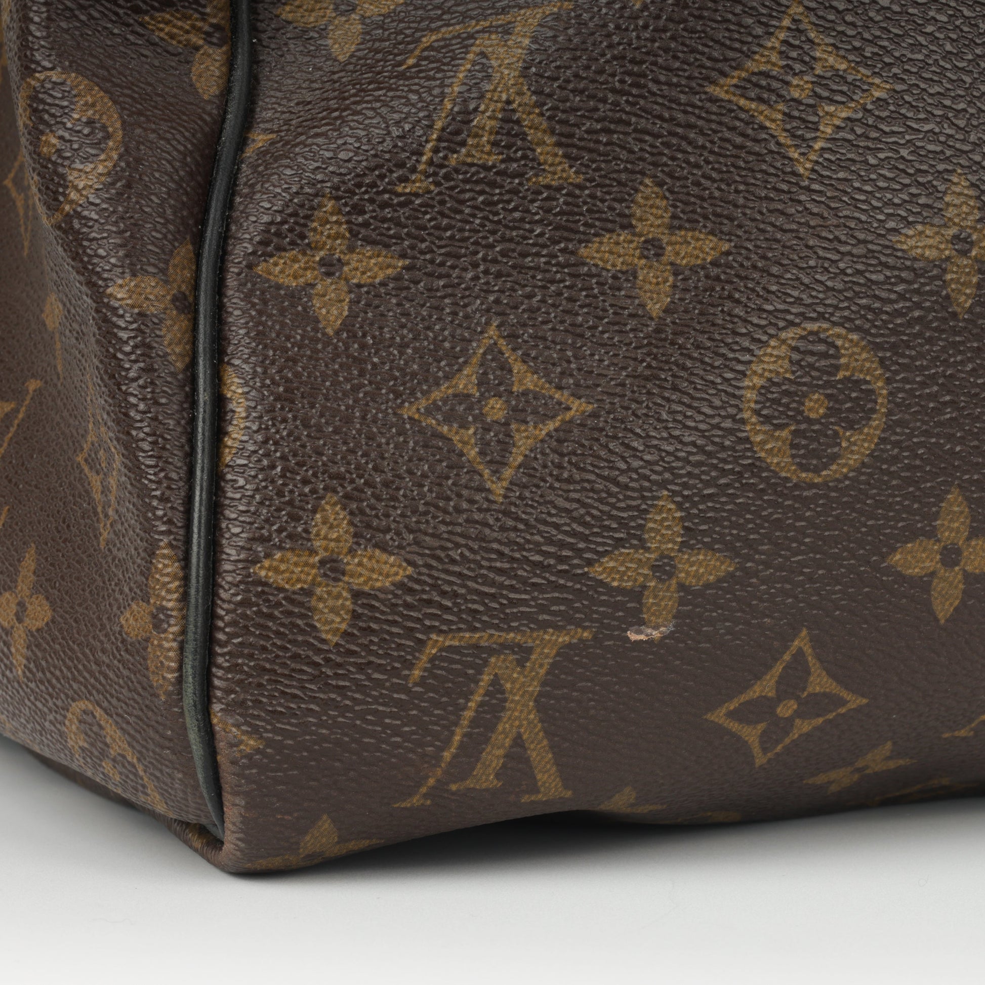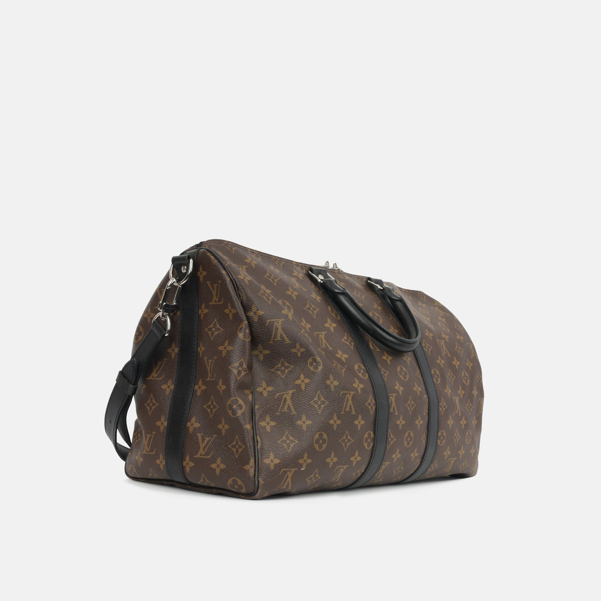 Louis Vuitton presents their signature Keepall bag, the perfect travel accessory for both men and women. Carefully crafted in the brand's iconic Monogram canvas with black leather trimming, top handles and shoulder strap, the Keepall is sleek and sophisticated. It's the perfect travel companion and a necessary addition to any luxury bag collection, especially luggage. The perfect mix between fashion and function, it's practical as well as stylish.