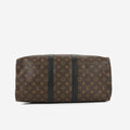 Louis Vuitton presents their signature Keepall bag, the perfect travel accessory for both men and women. Carefully crafted in the brand's iconic Monogram canvas with black leather trimming, top handles and shoulder strap, the Keepall is sleek and sophisticated. It's the perfect travel companion and a necessary addition to any luxury bag collection, especially luggage. The perfect mix between fashion and function, it's practical as well as stylish.