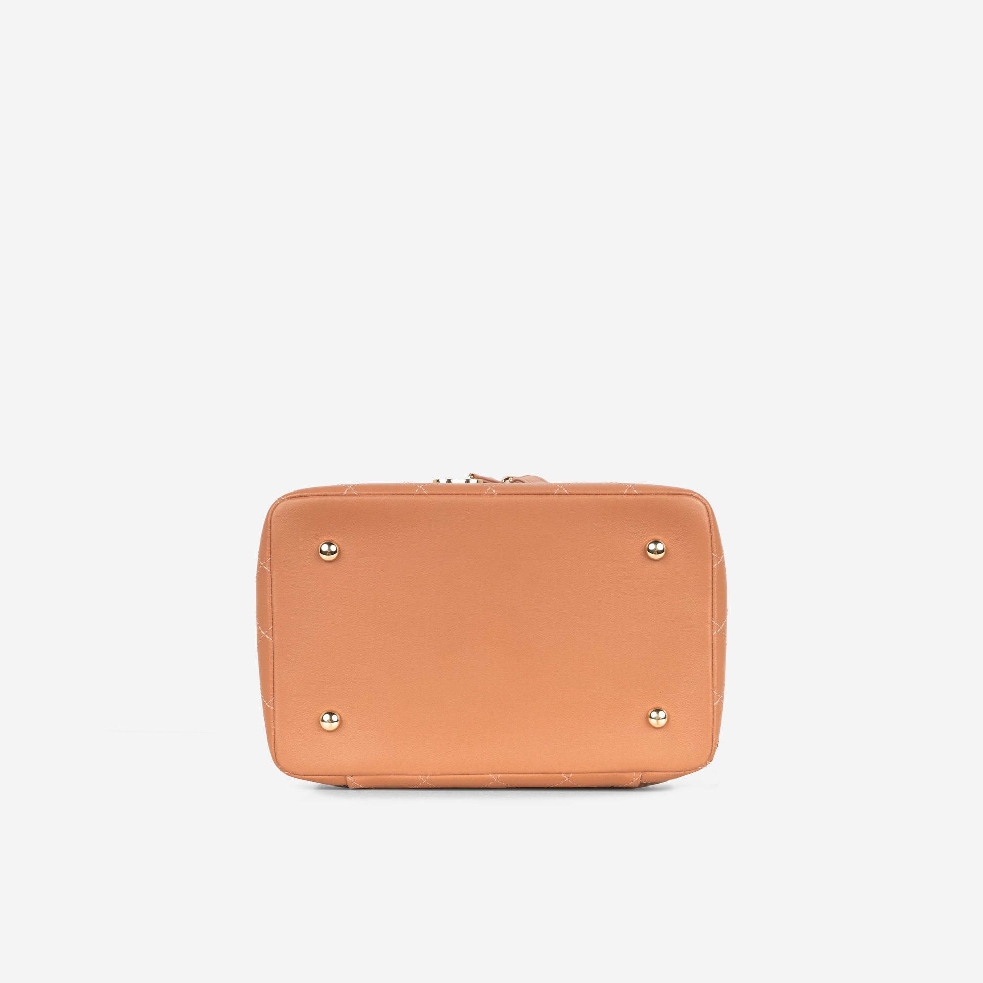Primarily developed for storing your beauty essentials and other necessities, the Knock on Wood vanity case is a standout piece in any collection. The vanity case features a luxurious leather body, a distinctive wooden top handle, complemented by the elegant champagne-gold hardware.