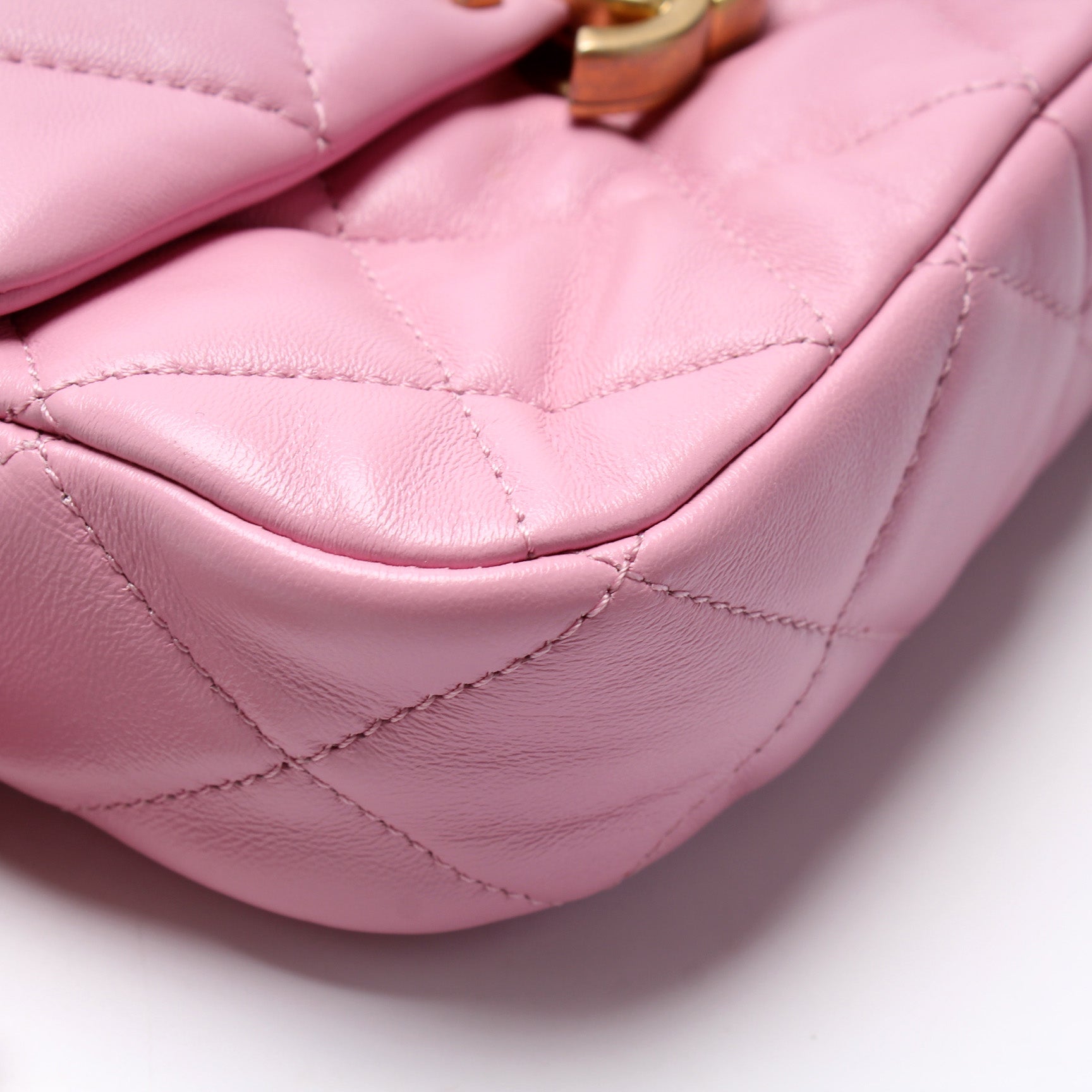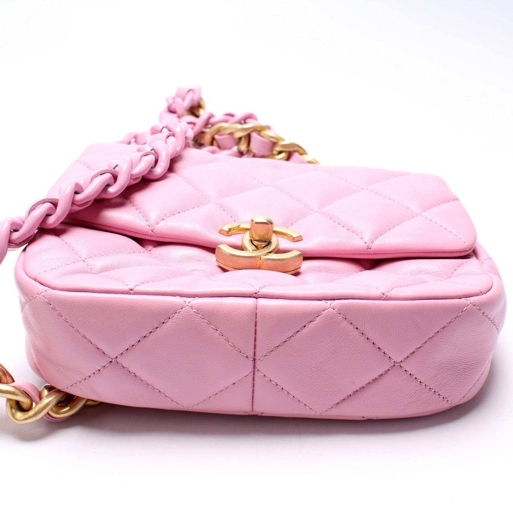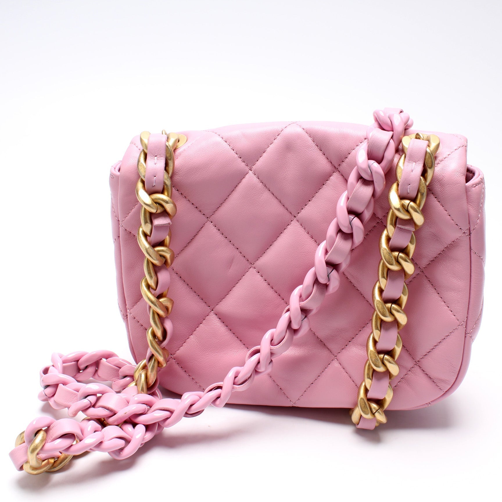 This Chanel Lacquered Chain Flap Smallis eye catching bag.